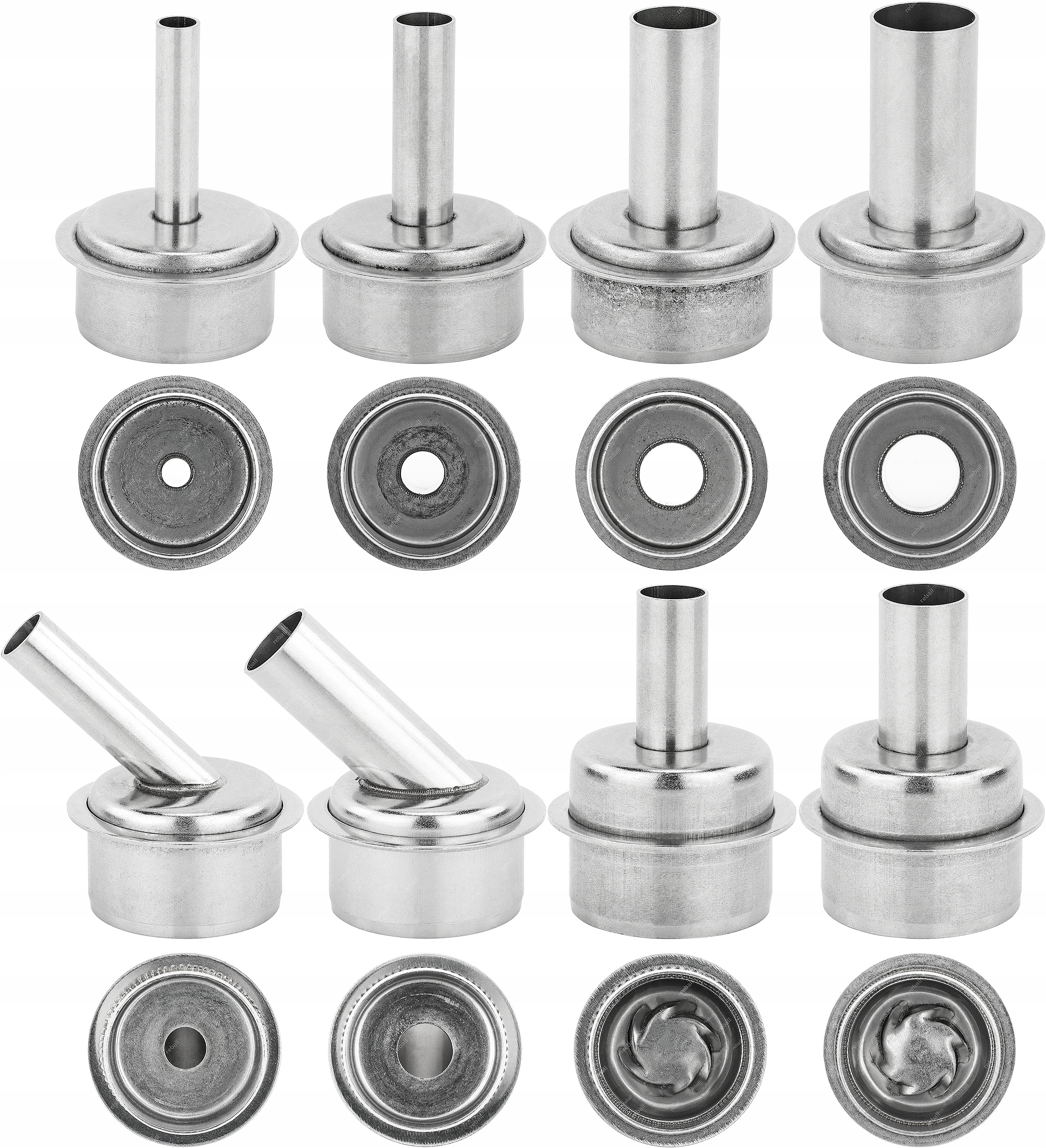 В комплект входят 8 сопел горячего воздуха, в том числе две, генерирующие спиральный поток воздуха.