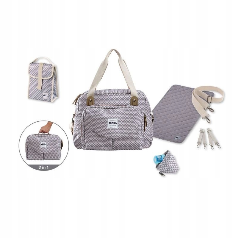 Чрезвычайно функциональная и дизайнерская сумка для мам от французского бренда BEABA. В него можно легко поместить необходимые детские аксессуары и удобно их организовать. Сумка выполнена в серых тонах, имеет уникальный треугольный узор и элегантный дизайн, поэтому является прекрасным женственным аксессуаром. В нее также легко можно упаковать свои вещи: телефон, ручки или ключи — рядом с многочисленными внутренними отделениями вы найдете бирки с рекомендациями по их использованию.