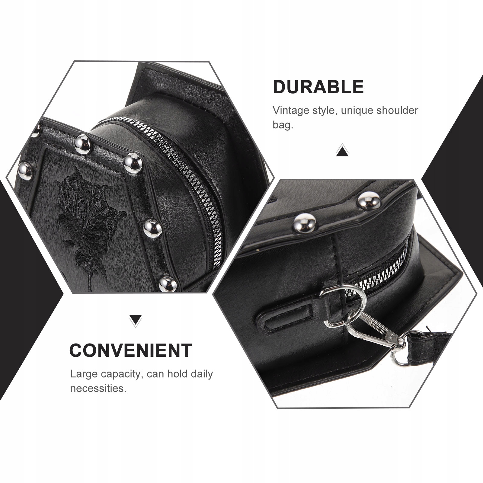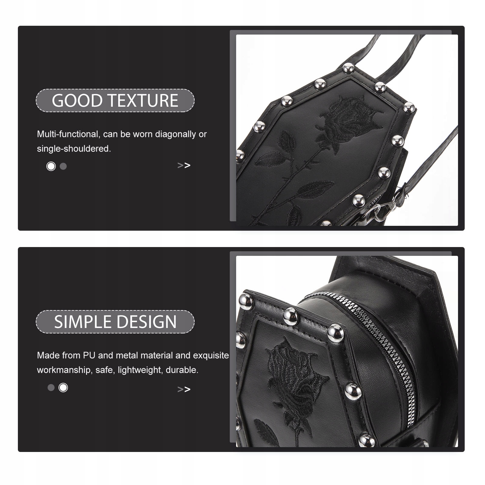 ✅ Материалы из металла и кожи, эта сумка через плечо в форме гроба очень прочная и удобная, обеспечивает длительное использование.