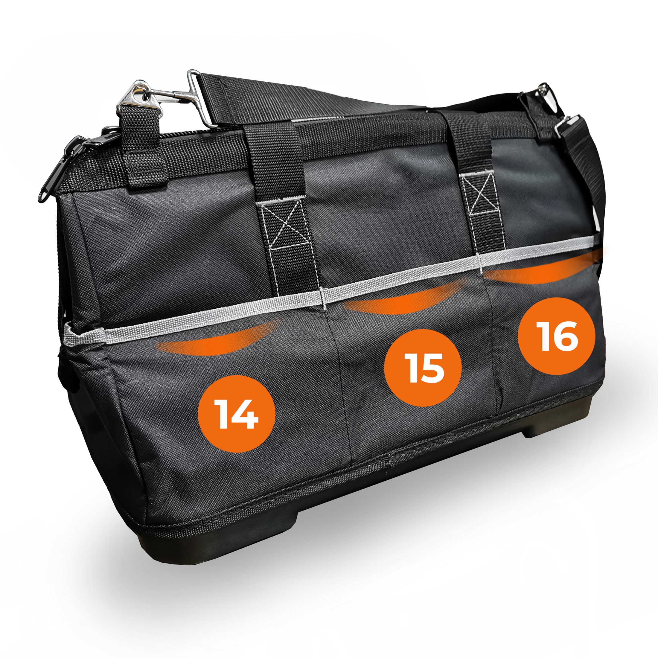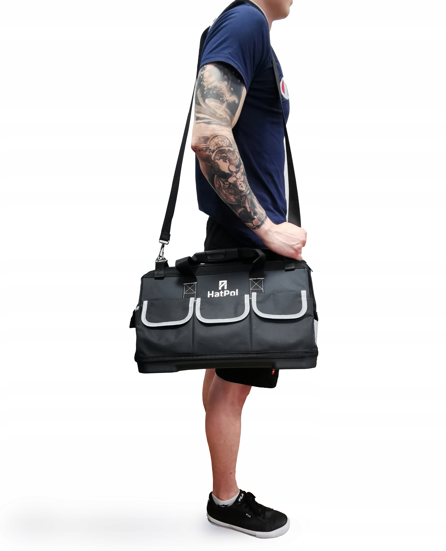 - Усиленное дно из закаленного пластика делает сумку идеальной даже для очень тяжелых работ.