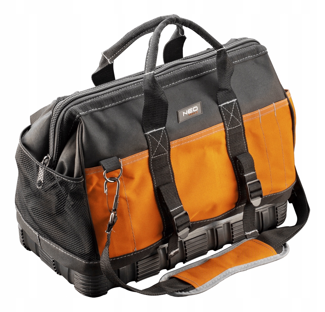 Сумка для инструментов NEO, размеры 40 х 22 х 33 см. Изготовлен из нейлона плотностью 600 D, обеспечивающего долговечность сумки. Он имеет жесткое водонепроницаемое дно, которое защищает содержимое при работе в тяжелых условиях. Сумка оснащена прочной ручкой и ремнем для переноски. Бренд NEO оправдывает ожидания профессионалов