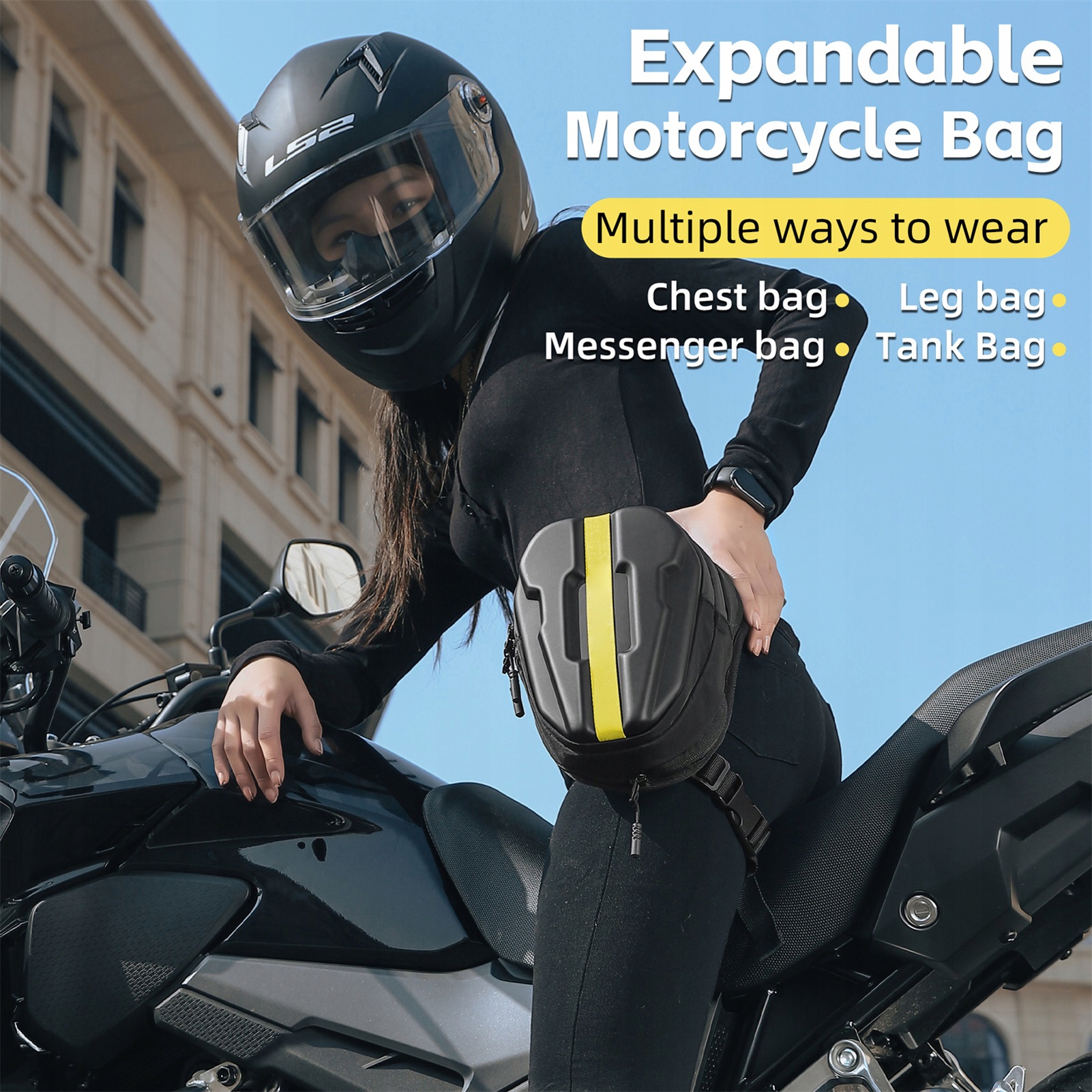 - Сумку можно использовать по-разному: ее можно завязать на поясе, носить на груди, установить на масляный бак мотоцикла и т. д. Вы можете выбрать, как использовать ее в зависимости от ситуации.
