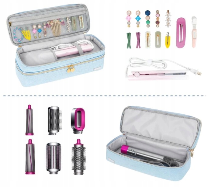 - Двойной слой большой емкость: Размеры: 39 x 14 x 13,5 см; Нижний слой предназначен для одноэтапных фен и горячих инструментов для волос Revlon, зачистков сушилки и многих других; Верхний слой имеет сетчатый карман с молнией на молнии для шпильки или аксессуаров, карман с эластичной лентой, выпрямитель для волос, инструменты для укладки волос и аксессуары