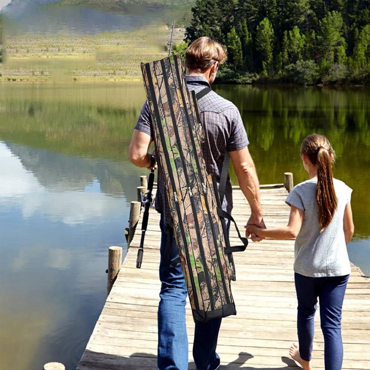 Портативная сумка для удочки: Эта сумка для рыбалки 2 в 1 с ремнем для ручной переноски и регулируемым плечевым ремнем подходит для ношения на плече и в руке. Кроме того, эта сумка для рыбалки складная, ее можно удобно хранить в рюкзаке или перчаточном ящике, что помогает нам сэкономить место.