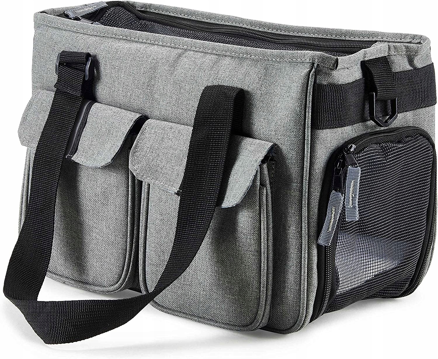 Сумка для транспортировки собак Louvra, сумка для переноски/сумка на плечо, нейлон, дышащая, складная с флисовой вставкой для щенков, собак, кошек, мелких домашних животных (серая)