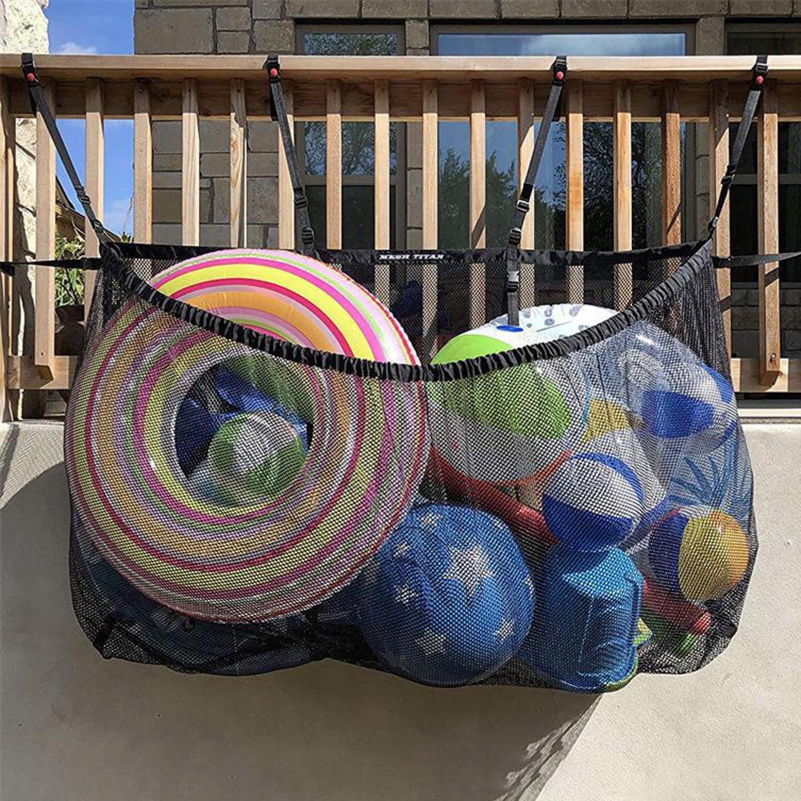 [Содержимое упаковки]: В комплект входит 1 плавучий органайзер, достаточно большой, чтобы вместить спортивные мячи, надувной бассейн, игрушки и аксессуары для улицы, чтобы навести порядок во дворе или доме.