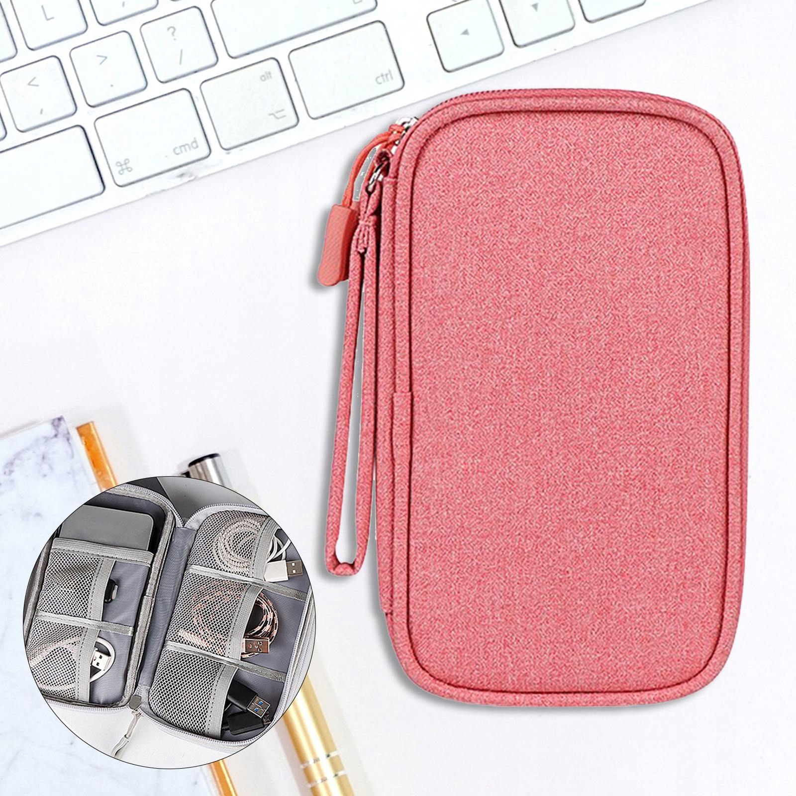 Многофункциональный органайзер для путешествий для электроники, кабели для флэш-накопителей, USB-накопитель, 1 слой, розовый