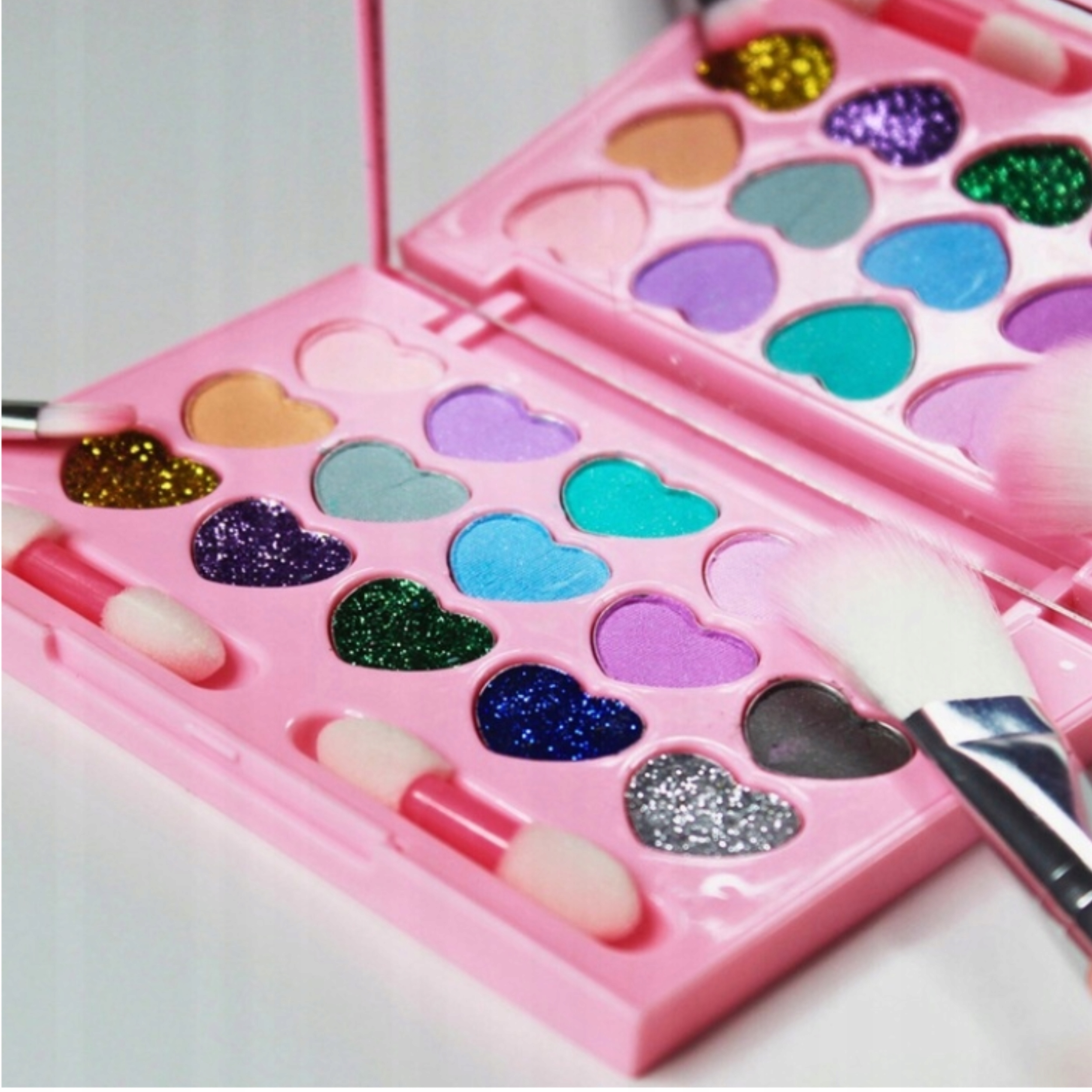 - Палитра с 15 разными тенями и двумя прикрепленными куколками.