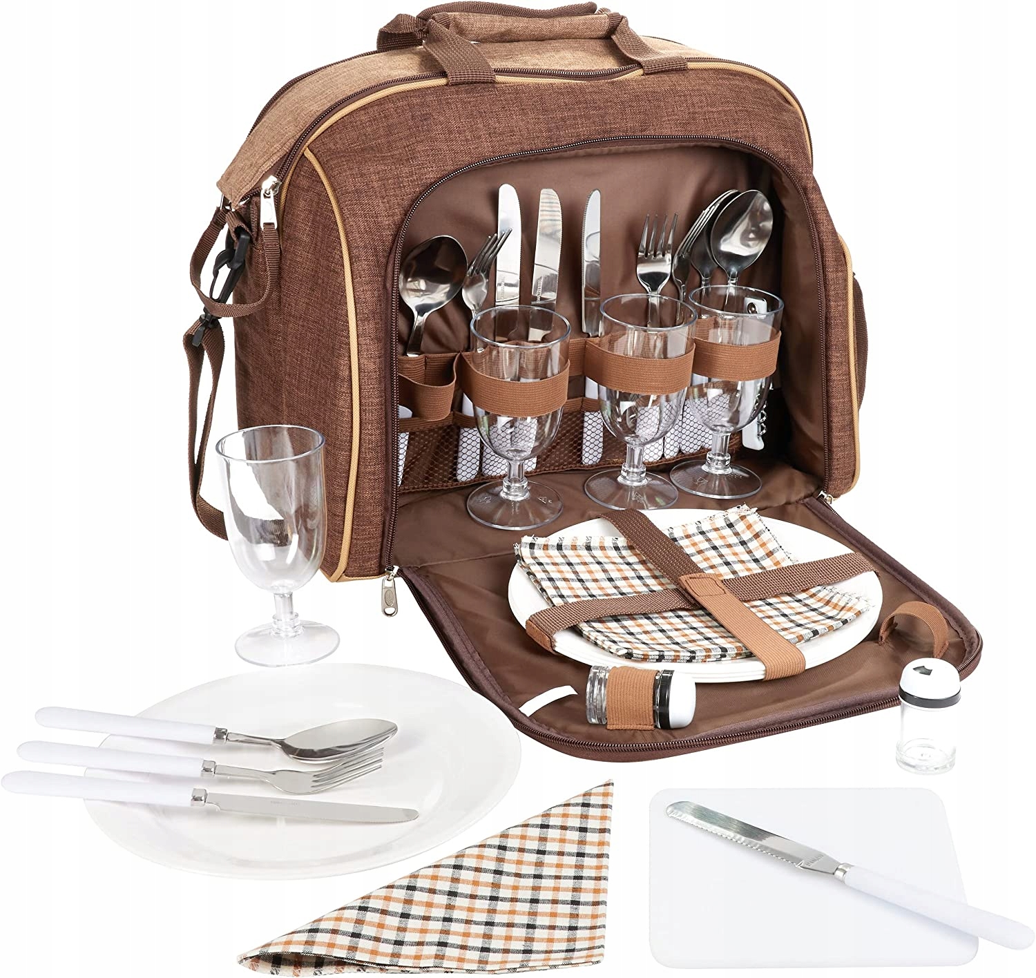КОРИЧНЕВАЯ СУМКА ДЛЯ ПИКНИКА ДЛЯ ПИКНИКА ДЛЯ 4 ЧЕЛОВЕК