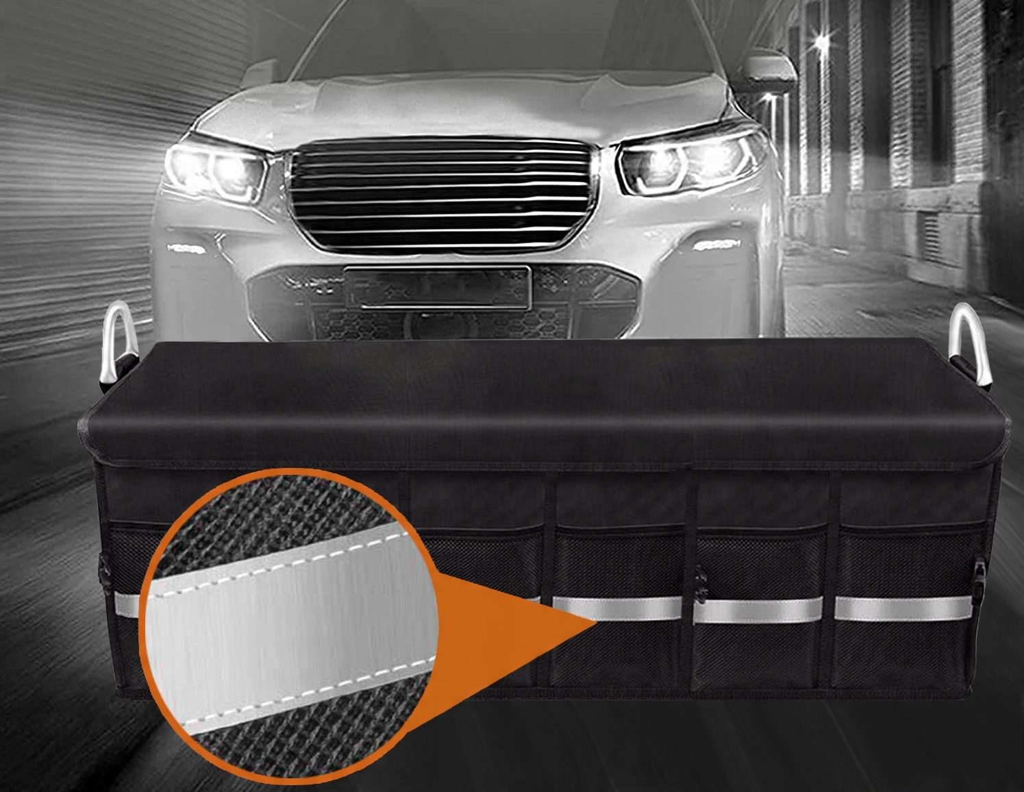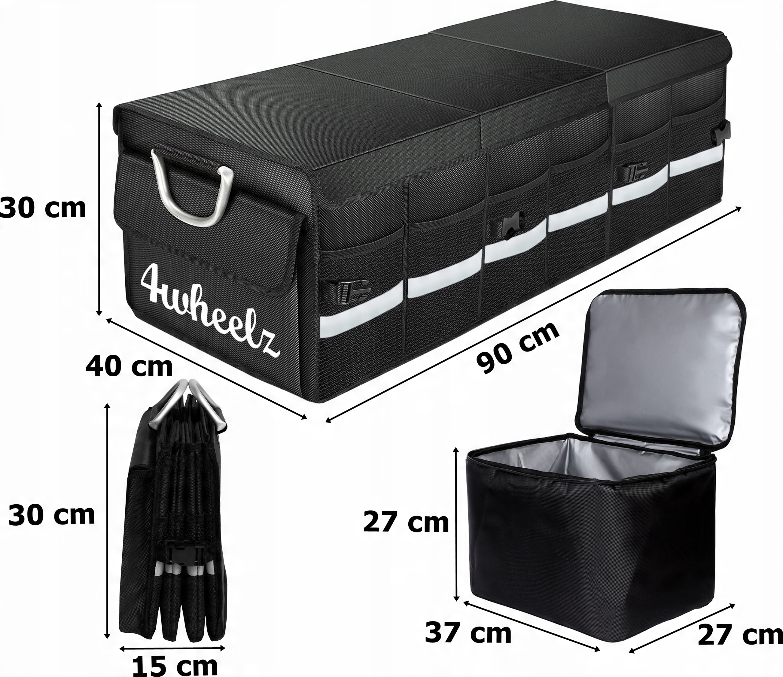 Essen — идеальный автомобильный органайзер, обеспечивающий порядок в каждом багажнике. Продуманная конструкция позволяет использовать его в соответствии с вашими потребностями. Органайзер можно использовать целиком, разделить на части или уменьшить на 2/3. Он прочно изготовлен из материалов высочайшего качества с внимание уделяется каждой детали. Благодаря материалу OXFORD 1680D он обладает повышенной прочностью и устойчивостью к повреждениям и является водонепроницаемым. Автомобильная сумка имеет прочные алюминиевые ручки, чехол на липучке, прочную строчку и нескользящие ножки, что делает ее устойчивой в багажнике. б>. Помимо вместительных внутренних отделений, он также имеет внешние сетчатые карманы и большой боковой карман на липучке. В целях безопасности сумка оснащена отражателями. Модель после упаковки принимает форму небольшого чемодана и занимает очень мало места. В комплект также входит термосумка емкостью 25 литров. Органайзер Essen — это очень вместительный и надежный автомобильный органайзер, который позволит вам систематизировать все вещи в автомобиле.