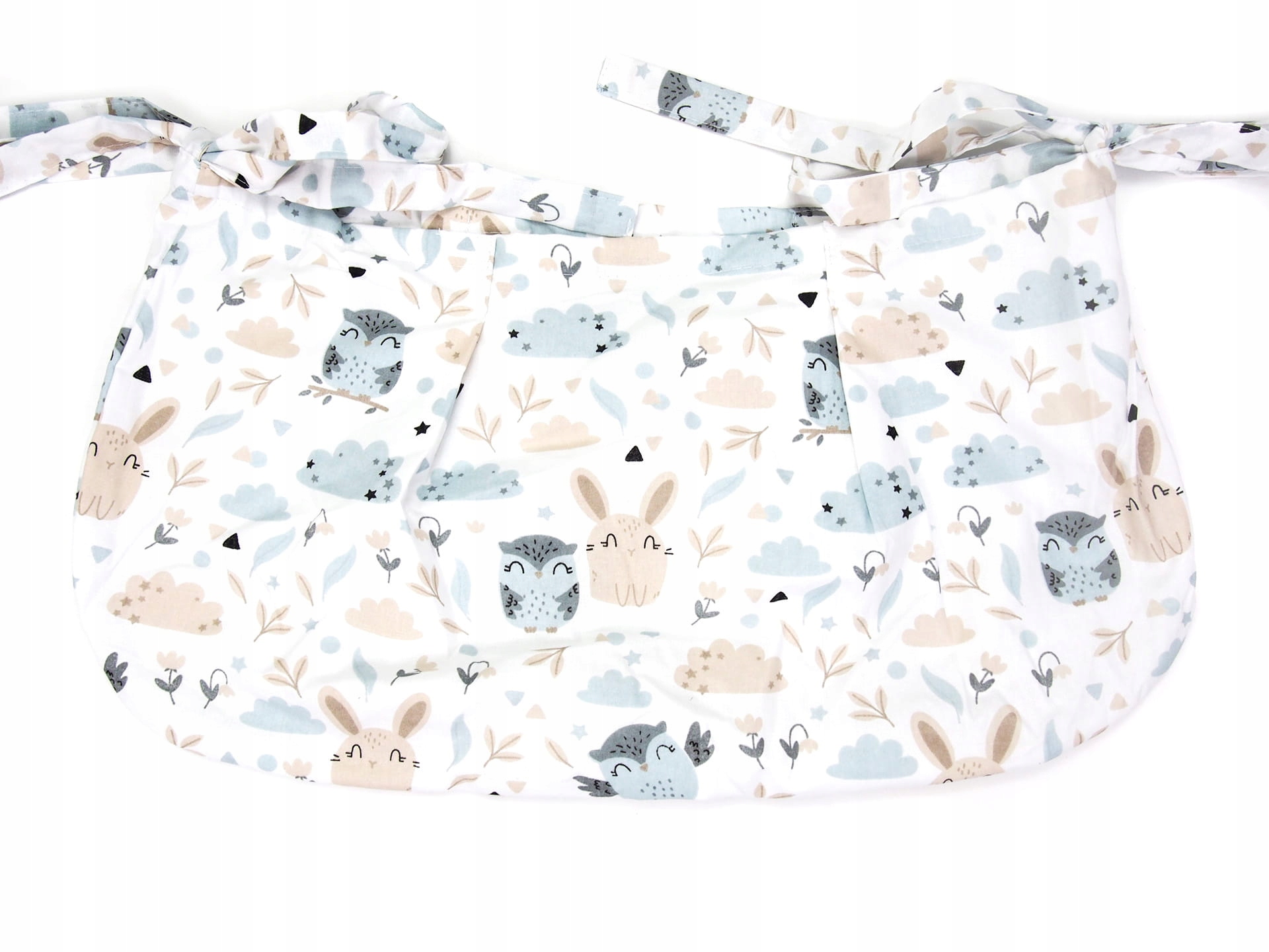 Практическая сумка для кроватки или коляски. Отныне поддерживать порядок будет проще. В вместительной сумке можно разместить косметику, подгузники, игрушки и все необходимые вещи. Сумка двухслойная, красочная снаружи и подкладка из белой ткани внутри. Сумка изготовлена из 100% хлопка. Материал очень хорошего качества. Пошив точный. Сумка крепится пришитыми ремнями. Ремни изготовлены из того же материала, что и сумка.