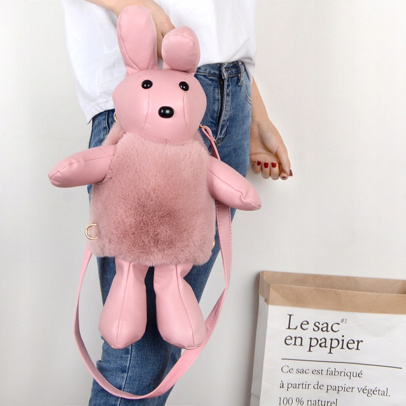 РЮКЗАК КРОЛИКА СУМКА ИЗ РЕЗИНОВОГО МЕХА ПОМПОН