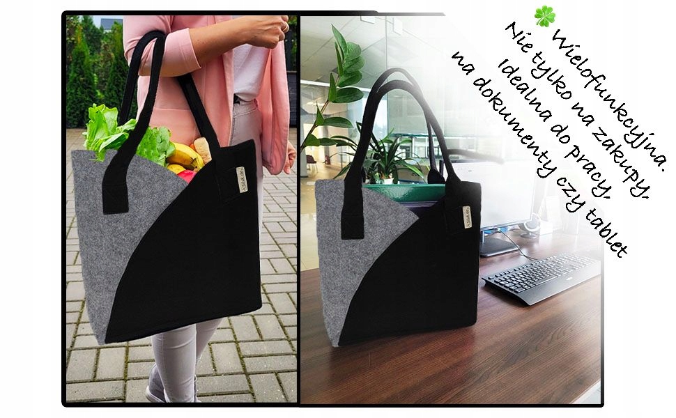 Сумка шоппер з екологічного фетру - сіро-чорна