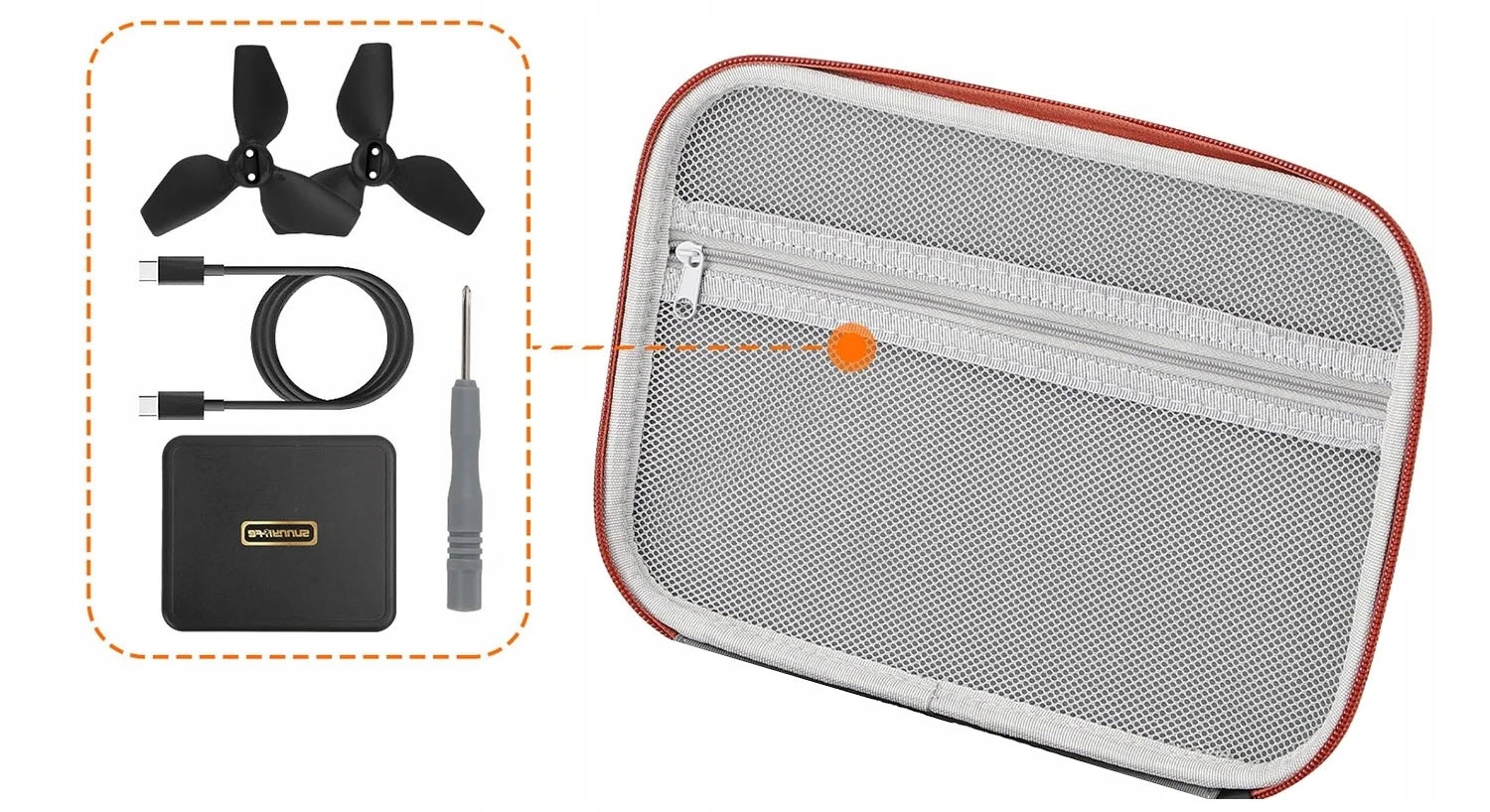 Внутри сумки вы найдете Практический сетчатый карман , идеально подходит для небольших элементов, таких как запасные пропеллеры , отвертка , Кабели или . Благодаря этому у вас есть все под рукой, и всегда заказано.
