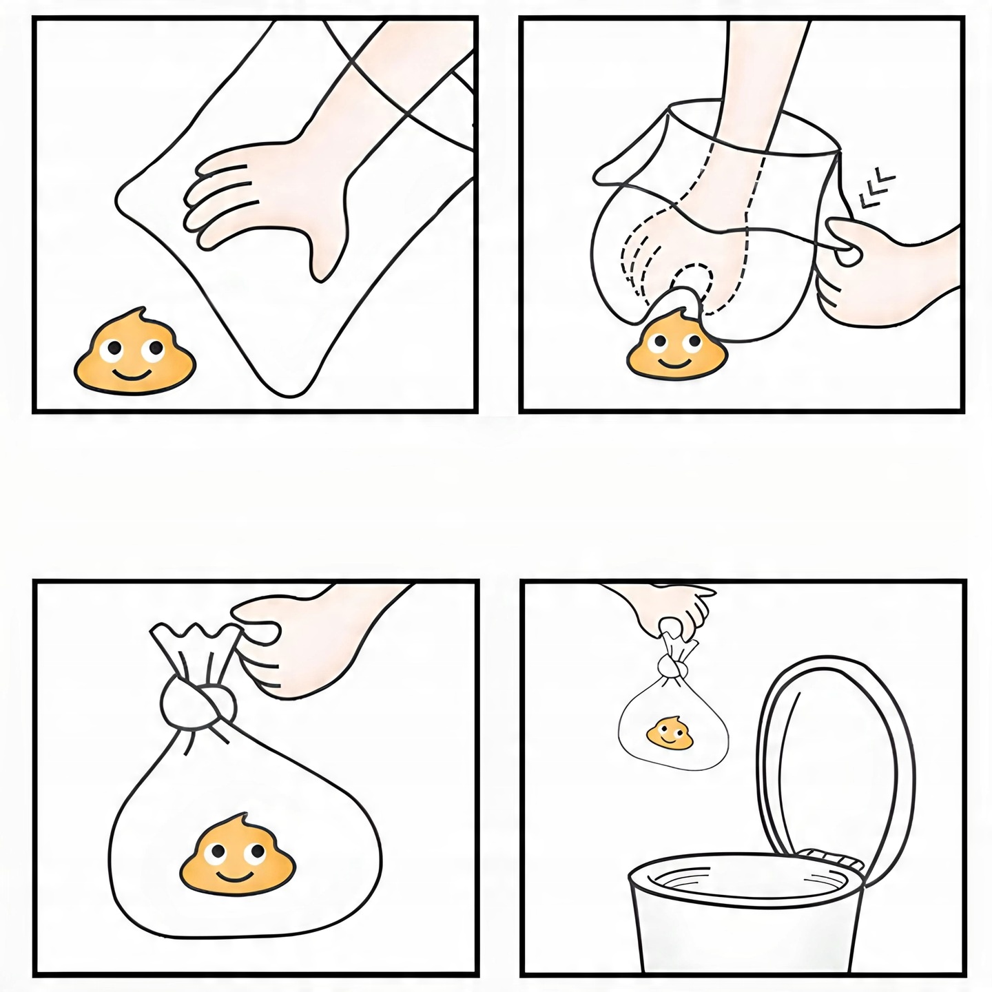 Чтобы удалить фекалии, наденьте на руку пакет и соберите фекалии. Затем поверните сумку снаружи внутрь и закройте ее.