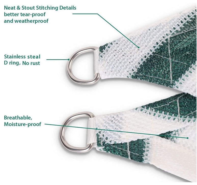 ✅ Дышащий и влагостойкий - материал специального плетения пропускает воздух и предотвращает скопление дождевой воды (не создавая неприглядных вмятин). Хотя теневой парус не является водонепроницаемым, он быстро сохнет (влагостойкий). Кроме того, он воздухопроницаем и пропускает теплый воздух, что значительно снижает температуру под ним.