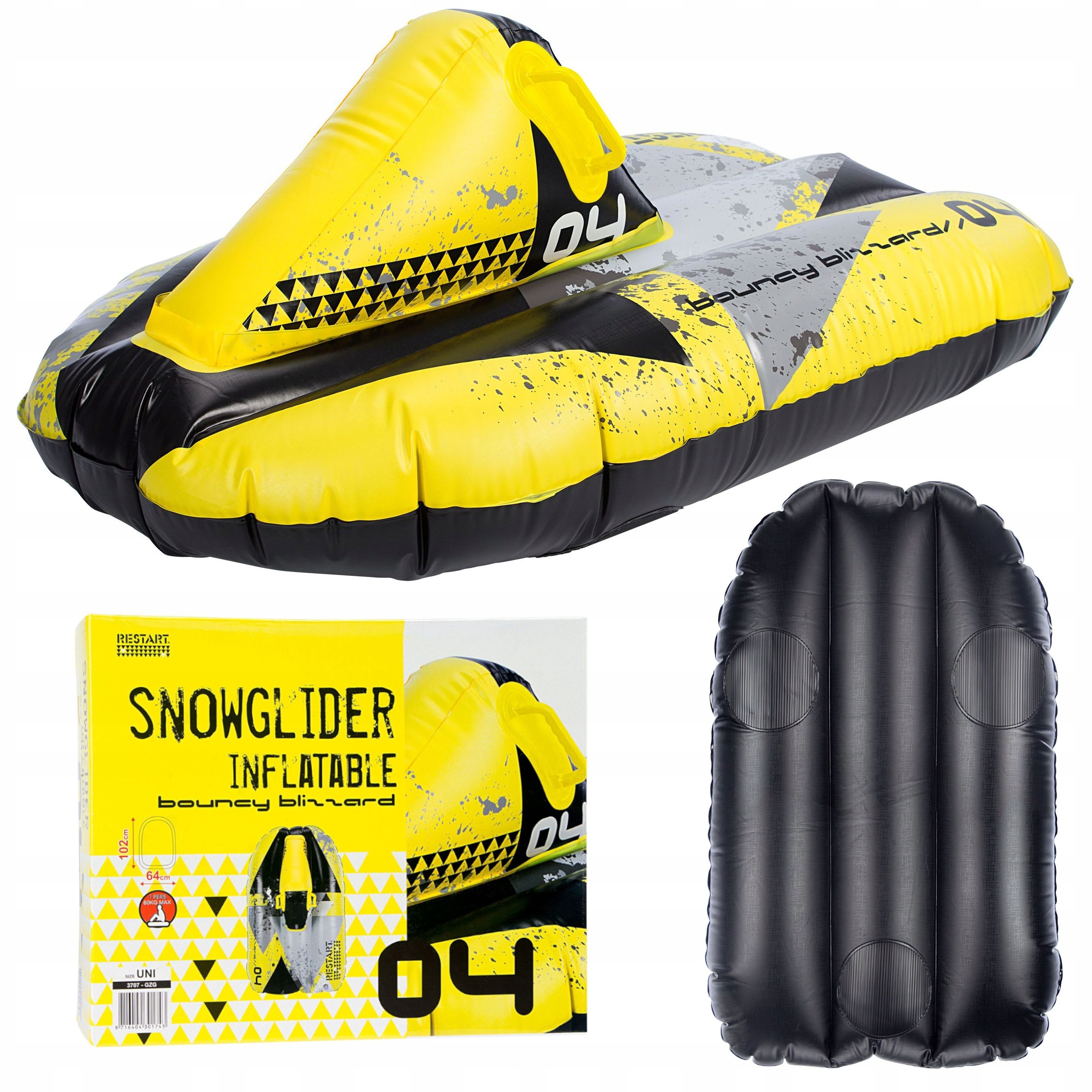 Снежный слайд Перезапуск Buncy Blizzard - отличный выбор для всех, кто хочет испытать захватывающее веселье в снегу. Его инновационный дизайн допускает быстрый транспорт - после истощения воздуха, он занимает минимальное пространство. Благодаря трем скользящим долям продукт обеспечивает более высокую скорость и лучшую контроль во время вождения. 2 пластиковые ручки позволяют определить сцепление, так что вы можете наслаждаться удовольствием, не беспокоясь о стабильности.
