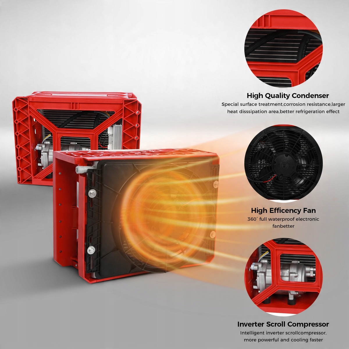 Конденсатор высокого качества — специальная обработка поверхности, устойчивость к коррозии, большая площадь рассеивания тепла, лучший эффект охлаждения.