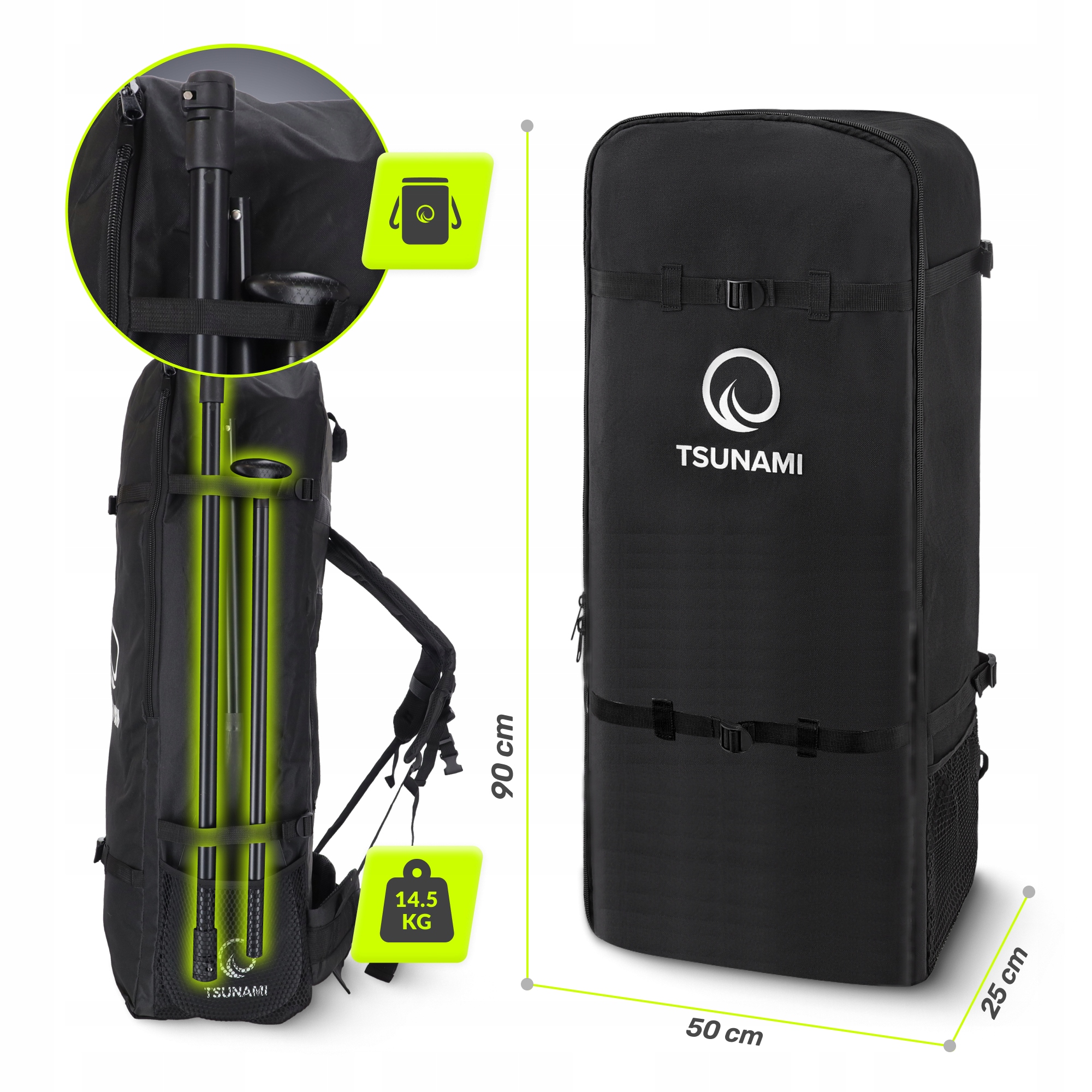 Доска TSUNAMI SUP изготовлена из двухслойного материала DWF, который армирован внутри тысячами волокон Dropstitch. Благодаря этому он отличается повышенной устойчивостью к температурным колебаниям и повреждениям – вам не придется беспокоиться, что он сломается при неожиданном столкновении с препятствием. Более того, удлинение доски до 350 см облегчает грести и уменьшает эффект «выскальзывания клюва». Все это делает доску SUP TSUNAMI идеальным выбором даже для людей, которые никогда раньше не гребли стоя.