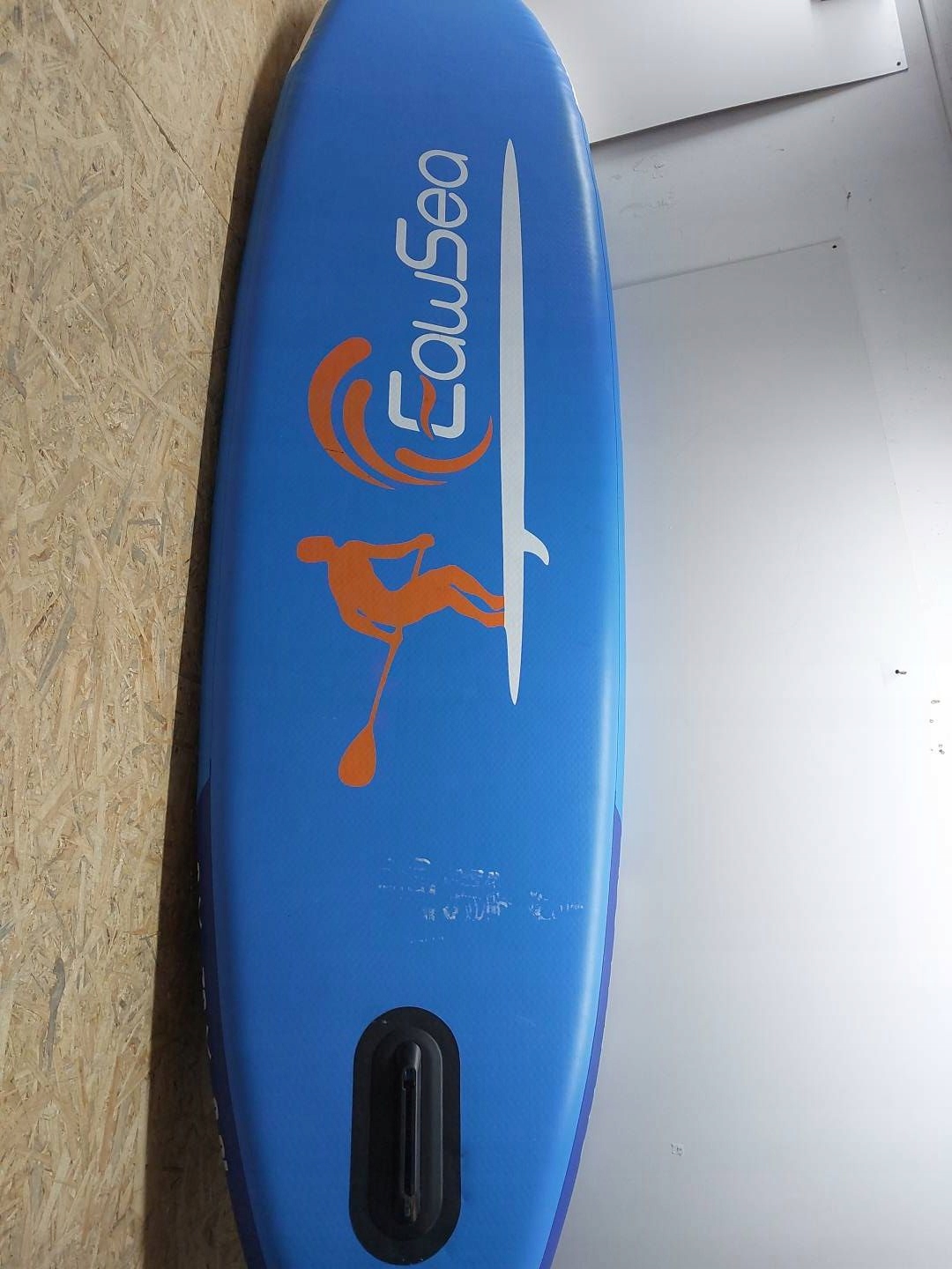 Надувная плата с стоячей, имеет размеры 320 х 81 х 15 см, собственный вес составляет 8,8 кг, обеспечивает отличную поддержку и может стоить на воде. Давление безопасности 12-15 фунтов на квадратный дюйм, максимальная емкость 300L, максимальная нагрузка 130 кг. Идеально подходит для начинающих и продвинутых пользователей