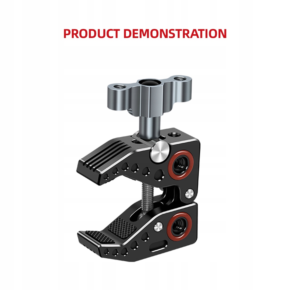 4. 【Универсальное расширение аксессуаров】 Благодаря боковым отверстиям для винтов 1/4 и 3/8 этот зажим можно легко расширить для размещения мониторов, кронштейнов и других аксессуаров.