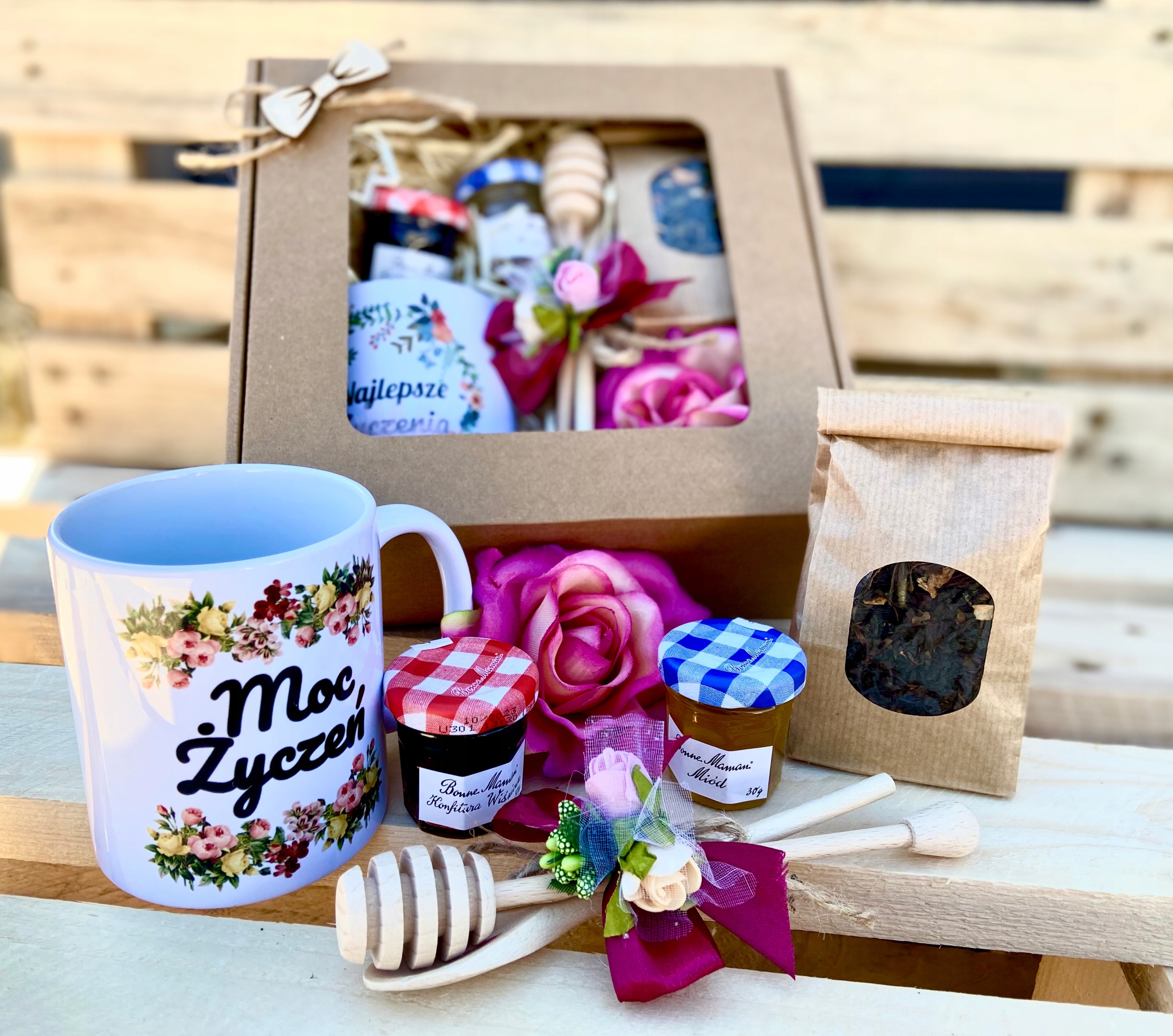 - деревянный набор - ложка для варенья и медовая роса,