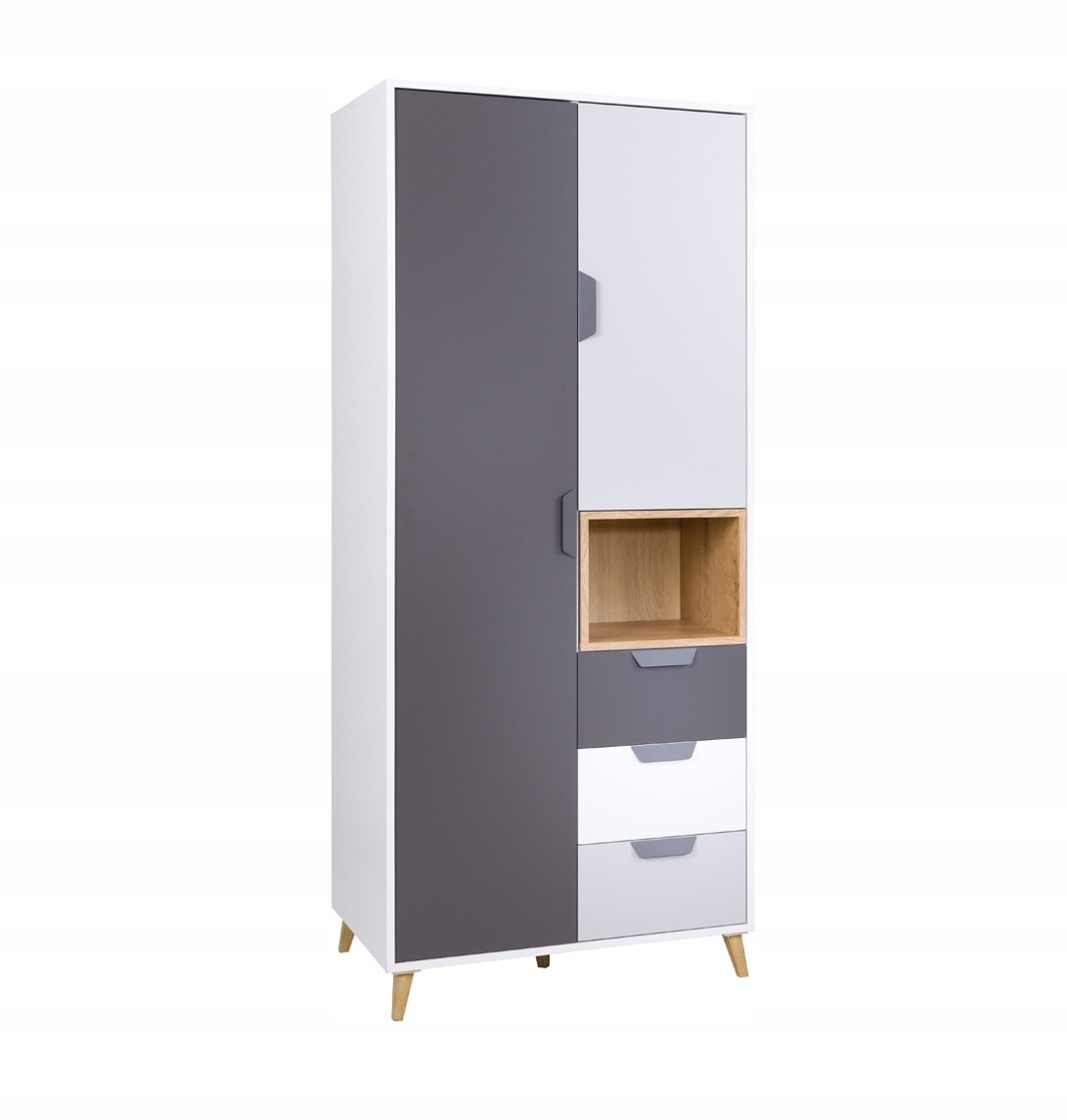 Комплект мебели JAŚ в четырех модных цветахбелый + графит + серый + дуб лефкас. Такое сочетание цветов приятно для глаз. Неповторимый внешний вид мебели преобразит любую детскую или подростковую комнату