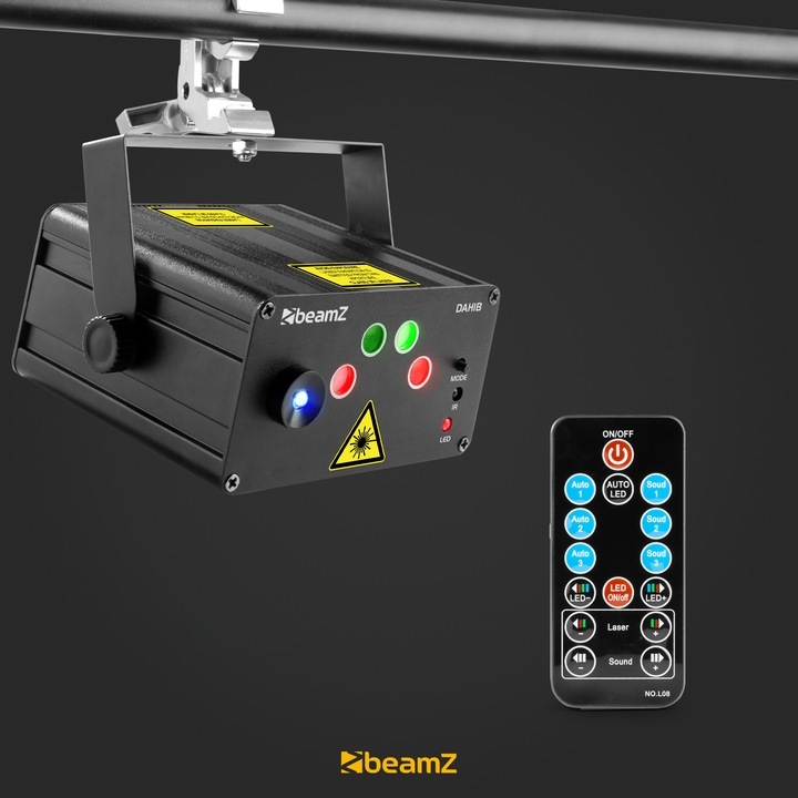 Вам не обязательно быть техническим специалистом, чтобы воспользоваться возможностями лазера BeamZ Dahib. С помощью прилагаемого пульта ДУ вы легко сможете выбрать программу или активировать один из режимов звуковой активации. Это позволяет Дахибу работать совершенно независимо, и вам не придется об этом беспокоиться, поэтому вы можете полностью сосредоточиться на своем мероприятии и гостях.