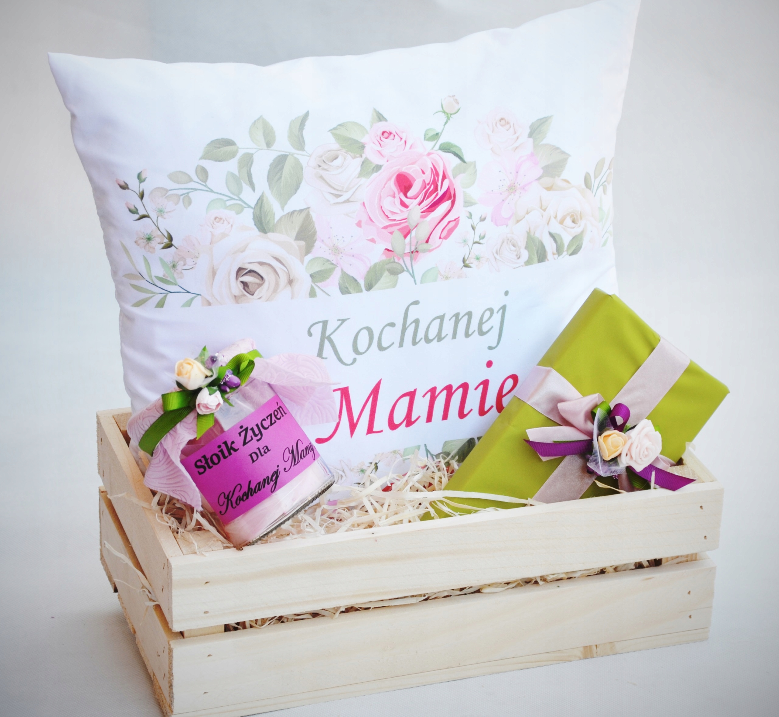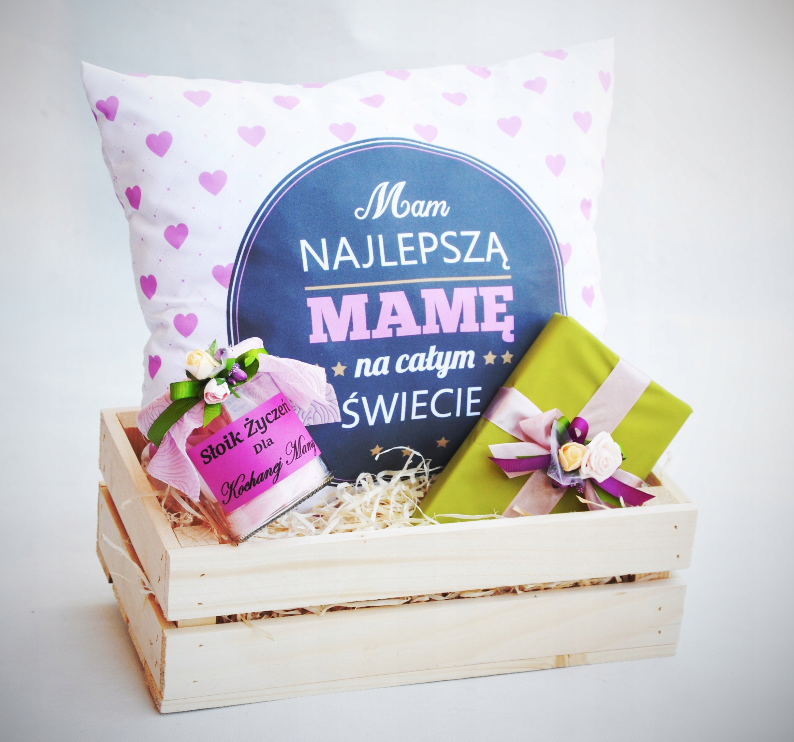 Предлагаем Вам приобрести оригинальный и практичный подарок для Мамы в виде оригинального набора. В деревянной шкатулке вы найдете великолепную подушку, баночку со 100 желаниями и восхитительные шоколадные конфеты «Ириски» в красивой упаковке.