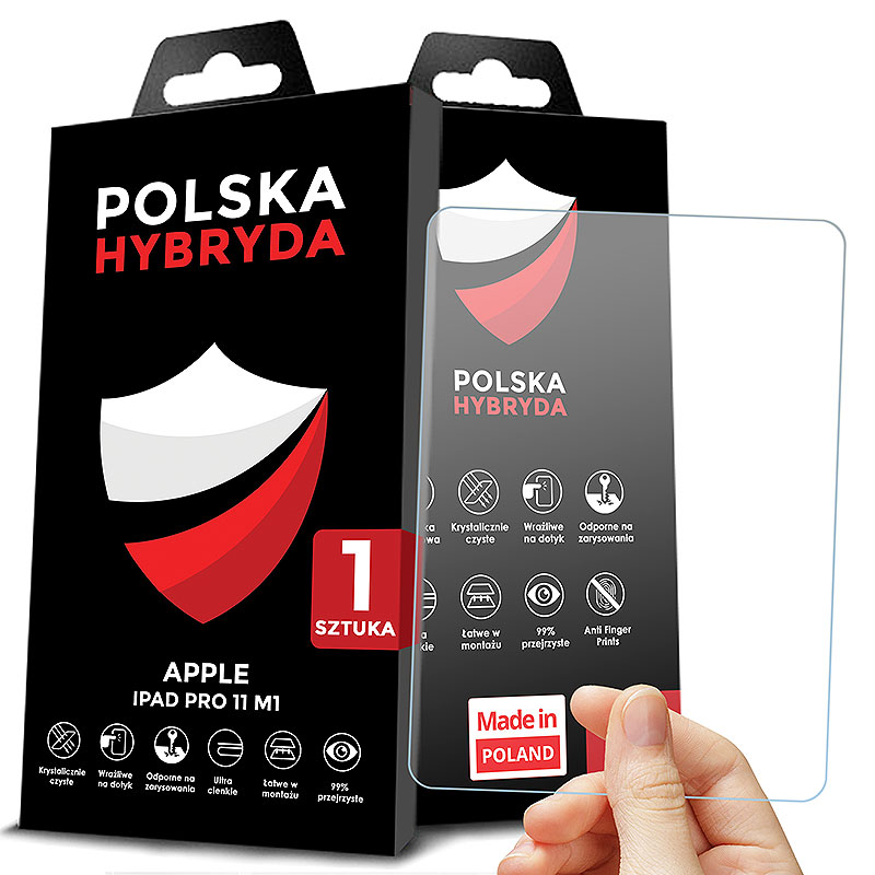 POLSKA HYBRID отличается высочайшей устойчивостью к царапинам, поскольку используются инновационные керамические покрытия, обеспечивающие реальную твердость поверхности 7H. Гибкое защитное стекло имеет толщину 0,18 мм. POLSKA HYBRID — безопасное, гибкое стекло нового поколения, которое благодаря использованию керамических покрытий создает впечатление отсутствия дополнительного защитного слоя на Apple iPad Pro 11 M1.
