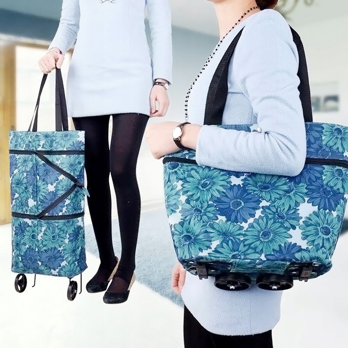 ✅Складные колеса позволяют положить ее в сумку через плечо или разложить до полного размера при покупке тележка.