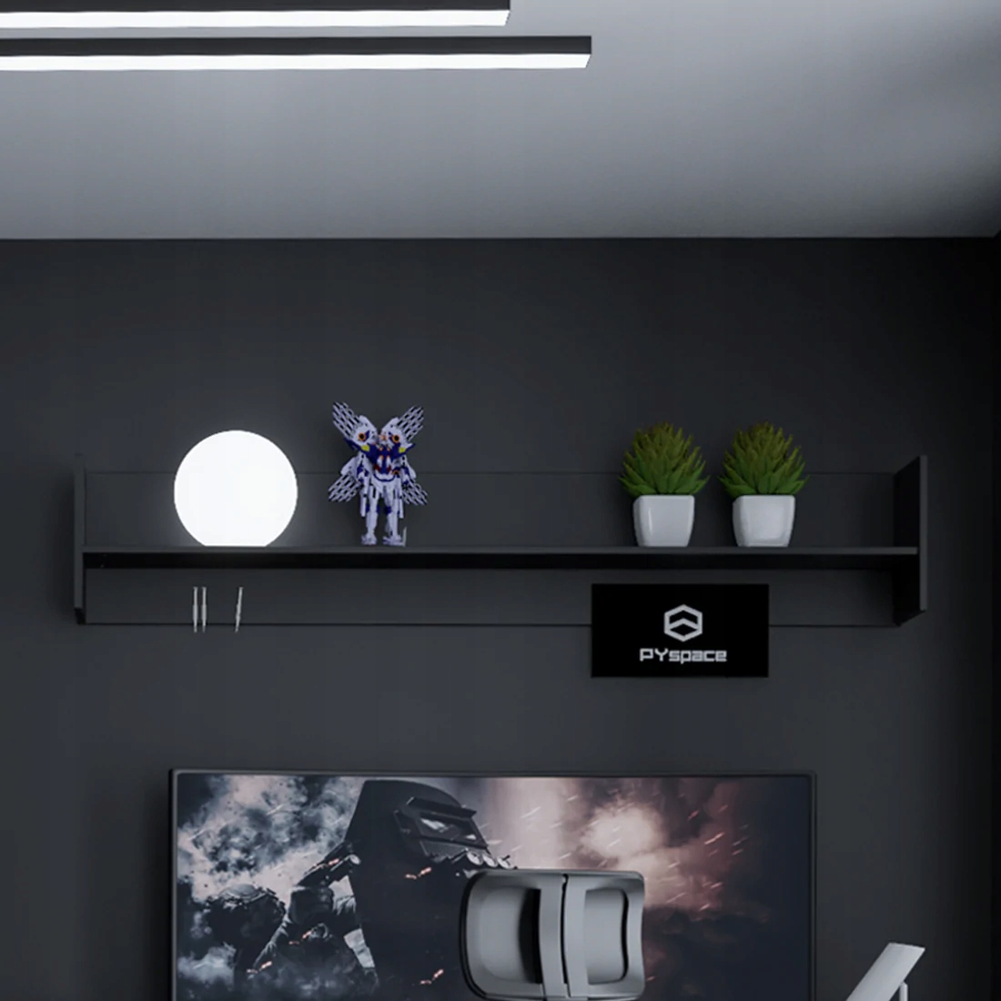 Черная подвесная полка имеет идеально подобранную ширину, благодаря чему ее можно разместить даже в небольших помещениях. Однако этой ширины достаточно, чтобы легко разместить коллекцию ваших любимых игр или сериалов.