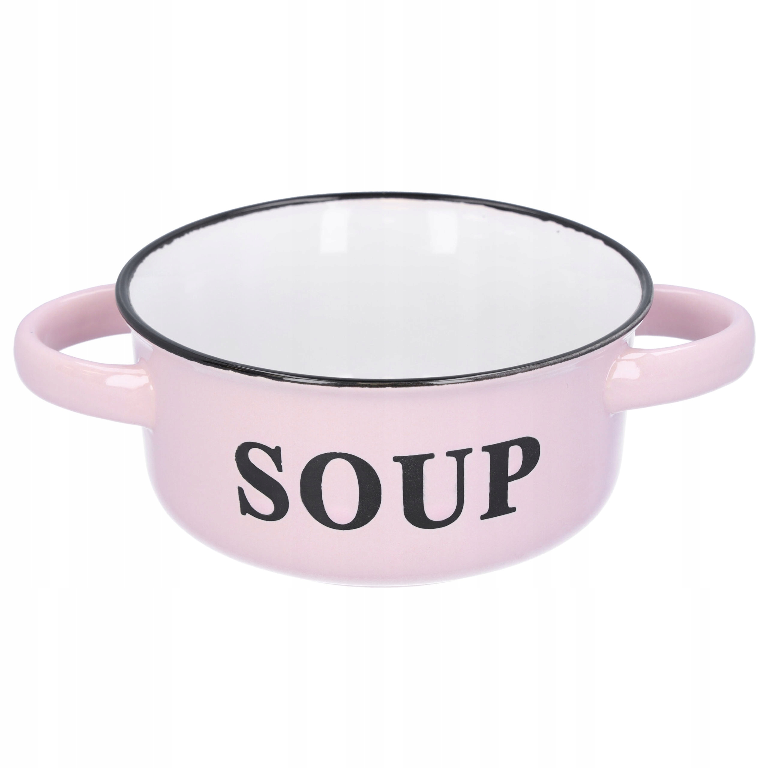 Керамическая суповая тарелка BOULLNESS розового цвета 490 мл с ручками под кастрюлю