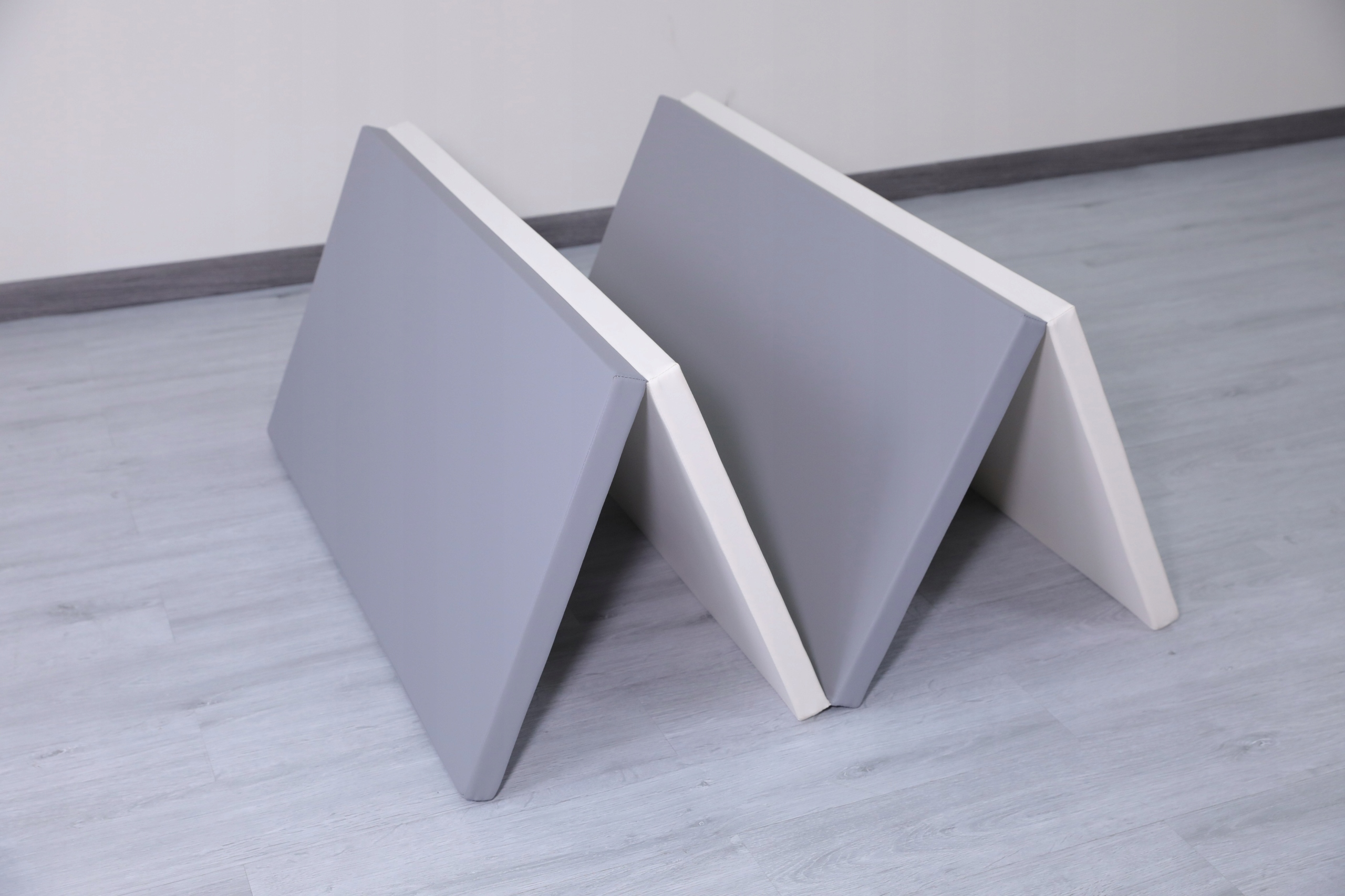 Спутниковая гимнастическая матрас 200x100x4 см. Четырех частей - белый и серый