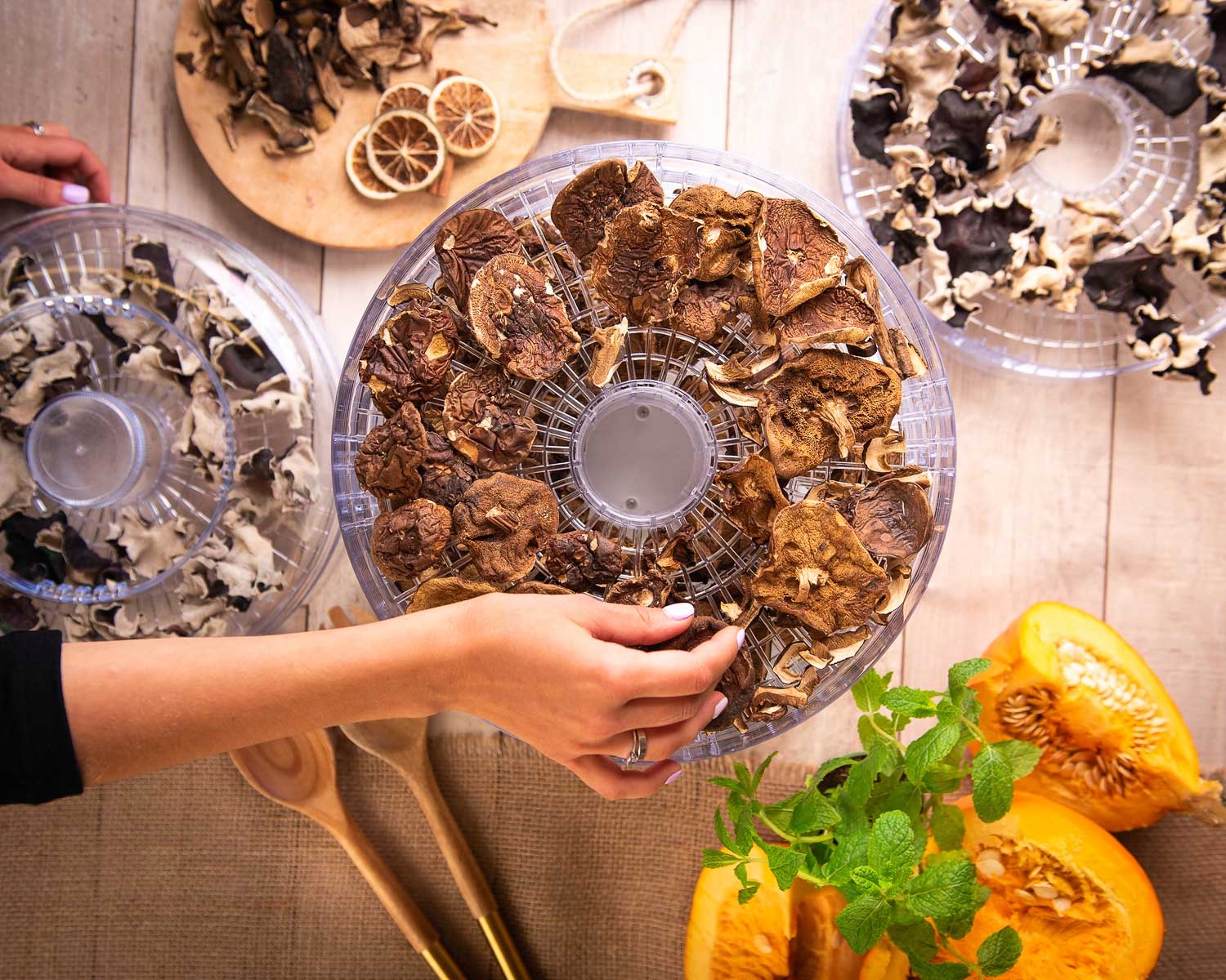 Благодаря большому размеру сушилки вы сможете высушить целые, крупные, мясистые грибы всего за несколько часов.