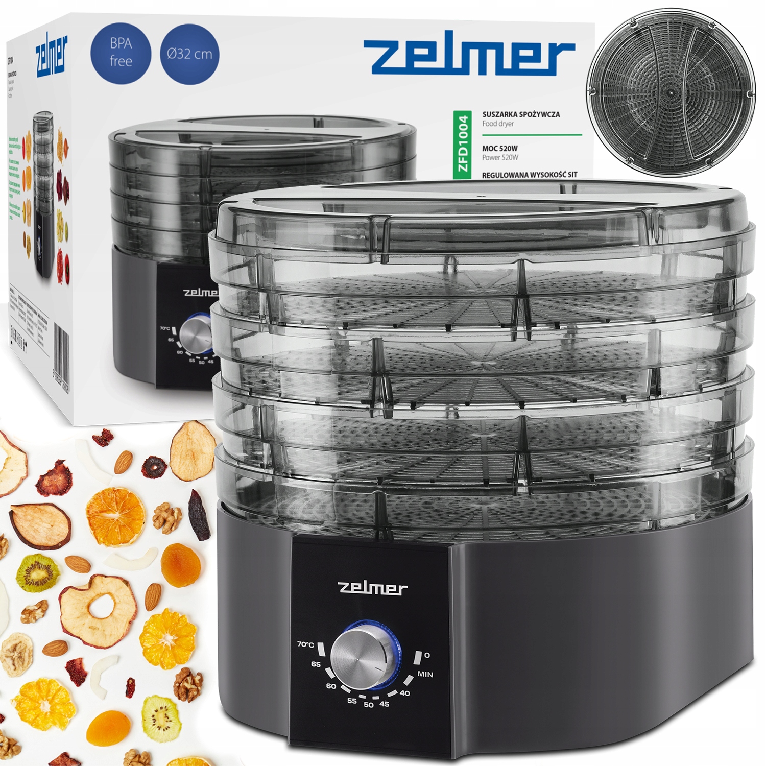 Исключительно эффективная сушилка для пищевых продуктов мощностью 520 Вт, 4 больших сита (32 см), регулировка температуры и высоты противней, безопасность материал и термозащита - идеально подходят для домашнего использования и полезной домашней консервации.