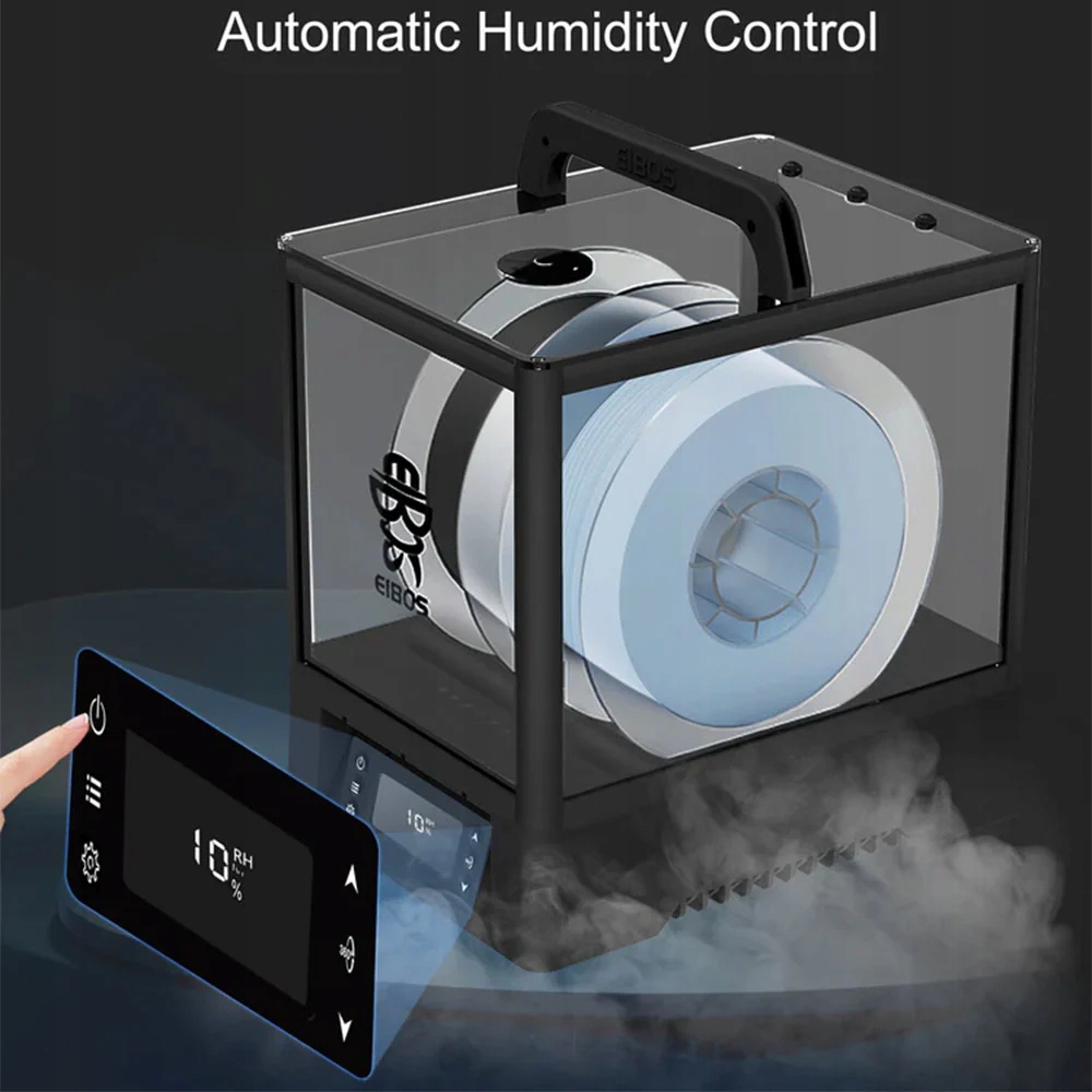 Полифем предлагает автоматический контроль влажности. Когда обогрев не нужен, активируйте режим влажности и установите желаемый уровень влажности. Система регулирует внутреннюю влажность в соответствии с предпочтениями пользователя, гарантируя, что нить всегда готова к печати.