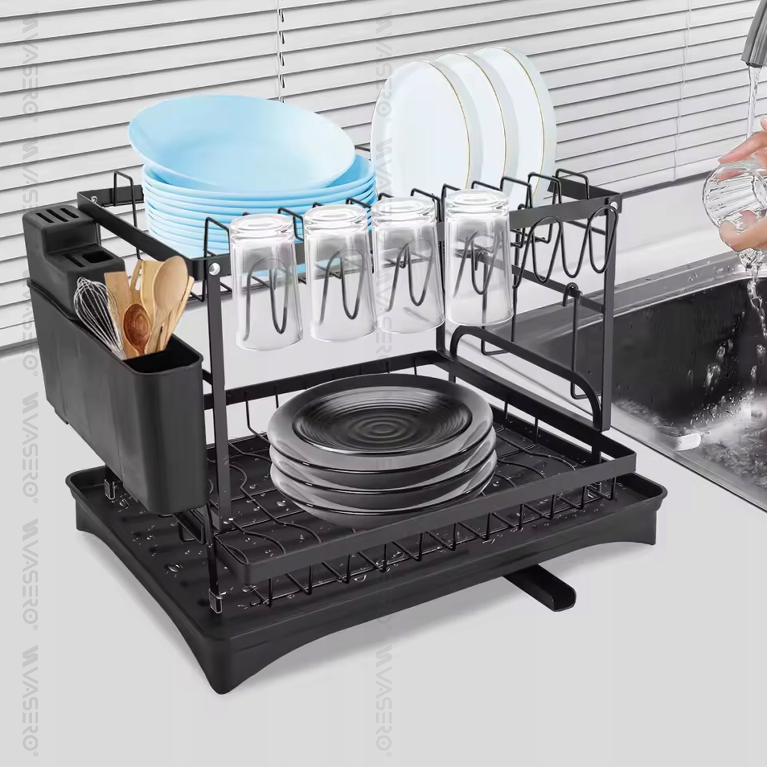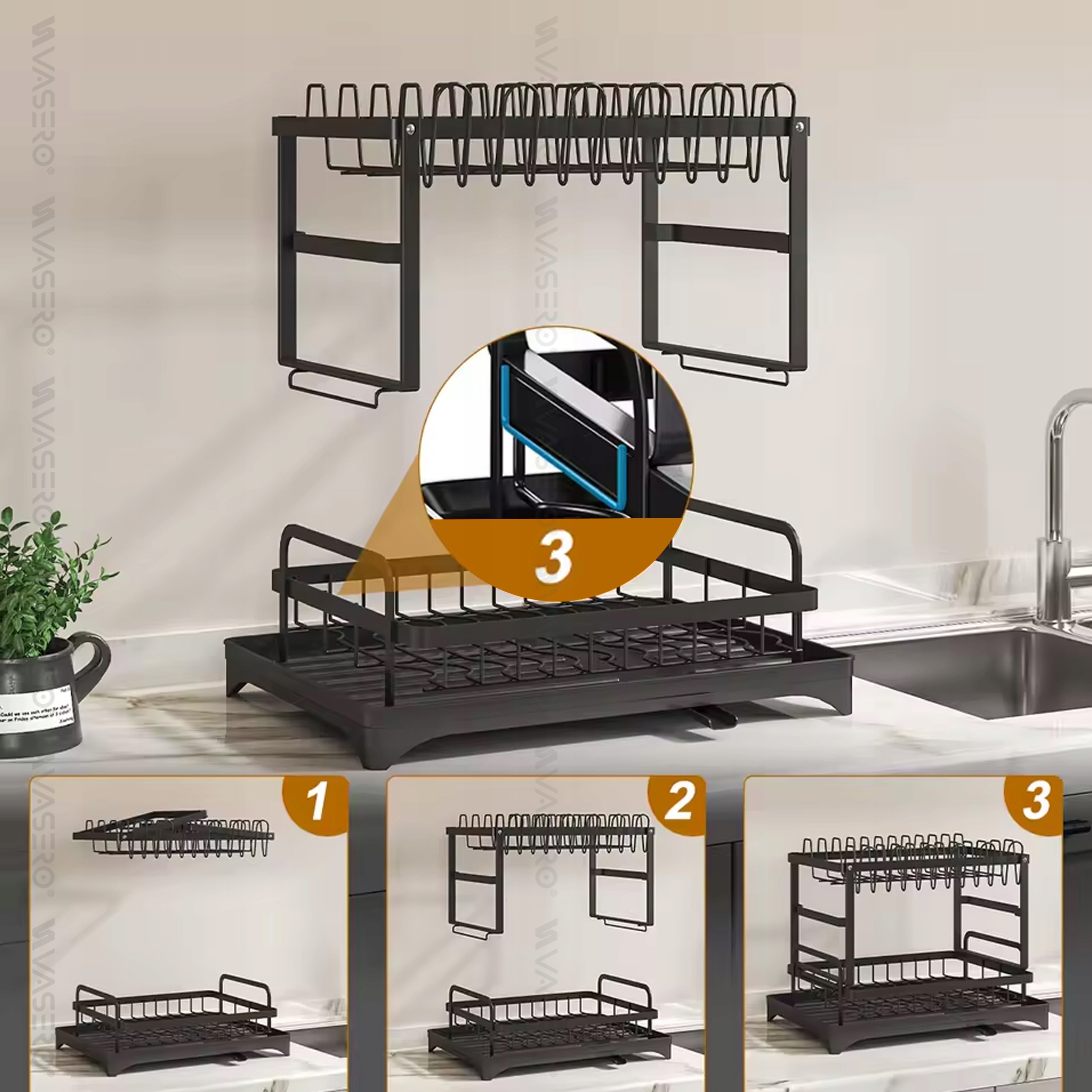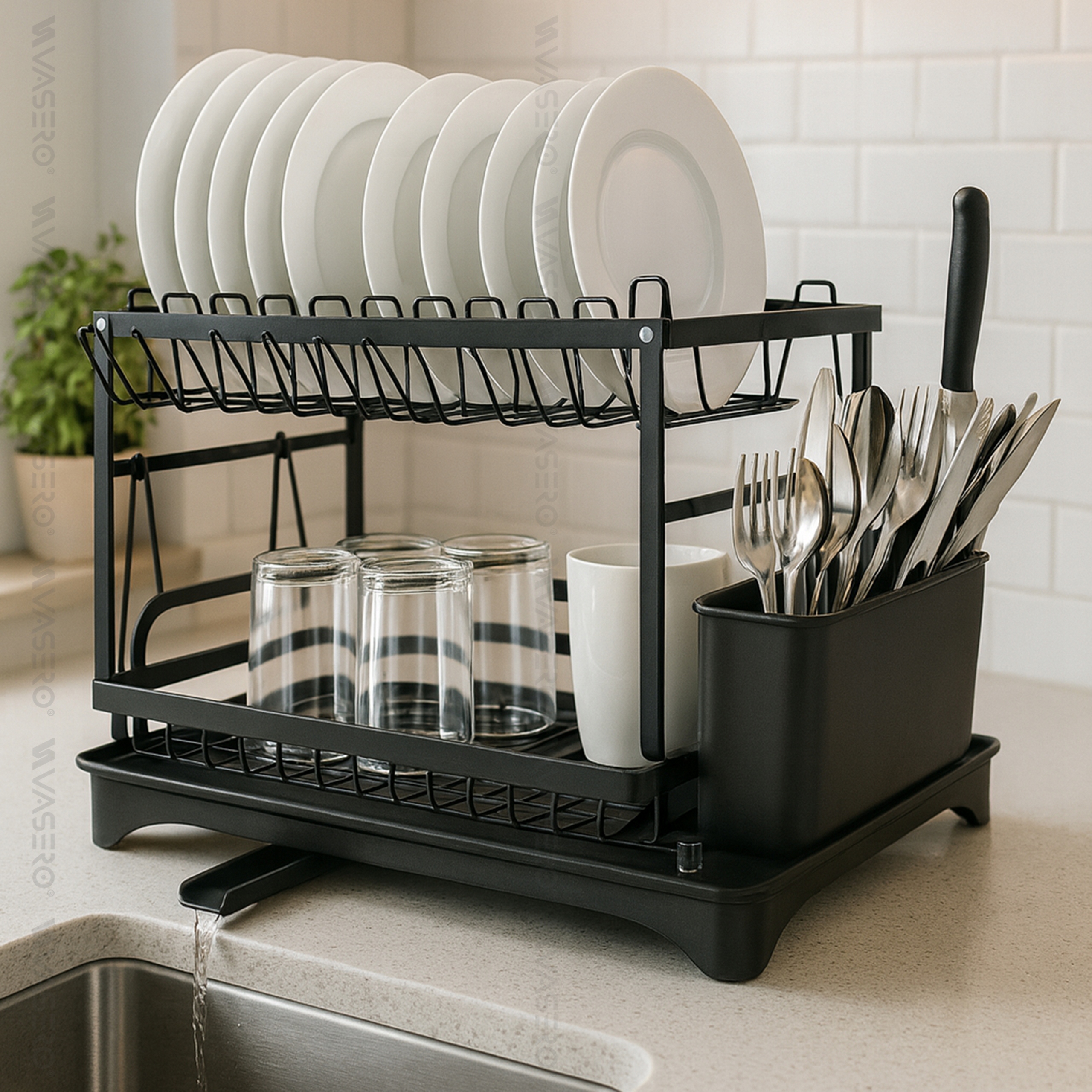 Попрощайтесь с влажным верхом и испортите раковину! Двухвелевая сосудистая сушилка -это практическое решение, которое поможет вам организовать пространство и эффективно высушить посуду после промывки. Сплошная структура нержавеющей стали гарантирует долговечность и надежность в течение длительного времени.