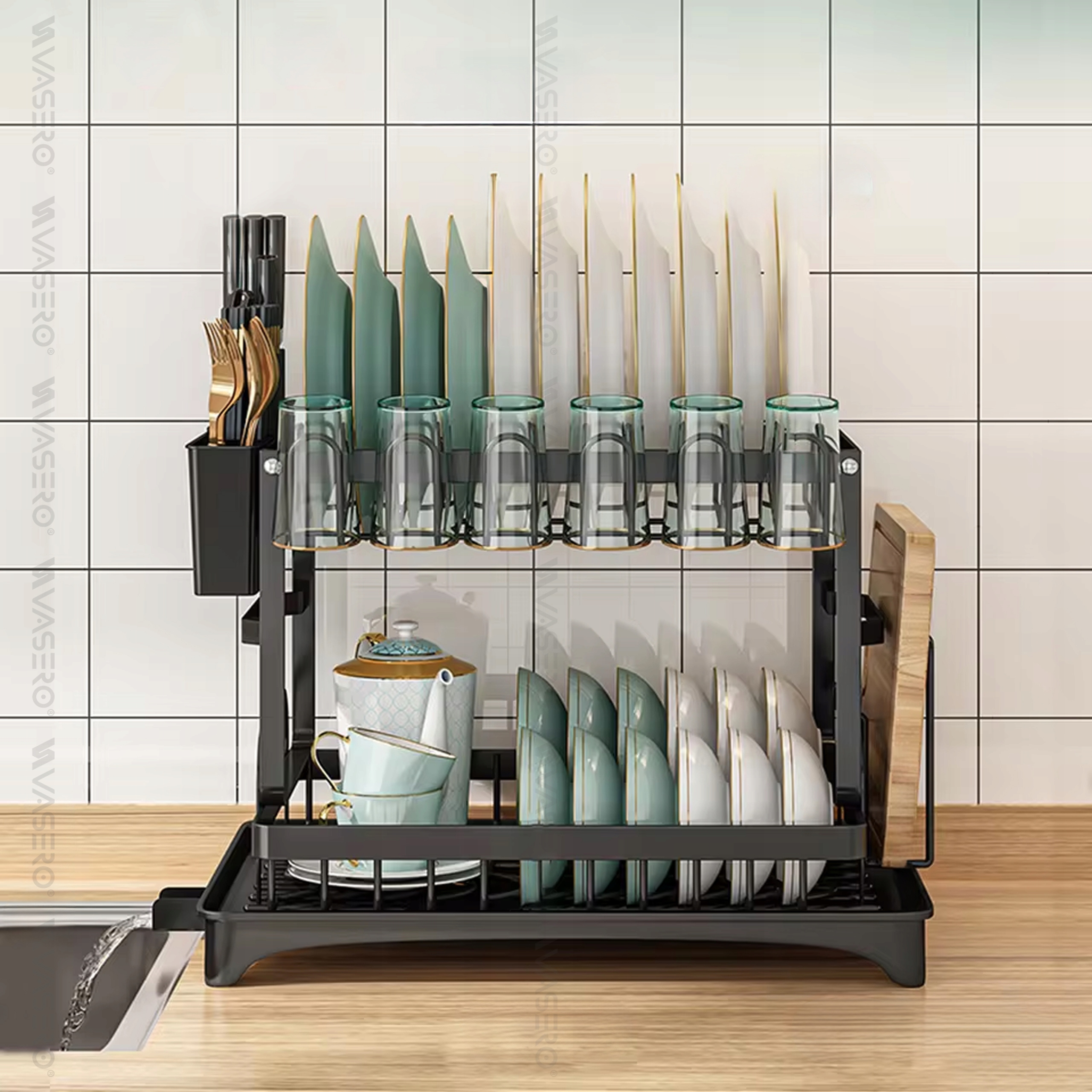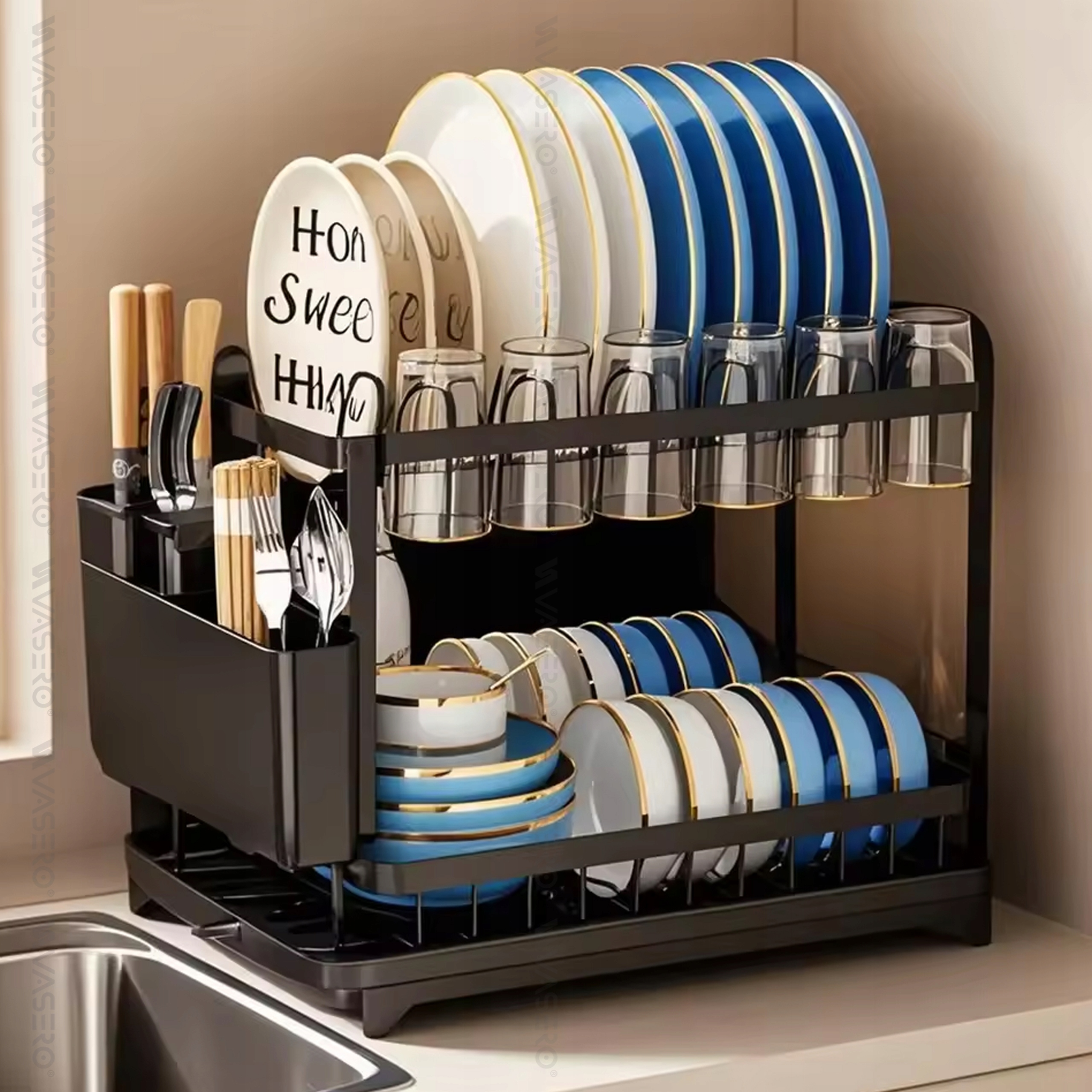 Благодаря двум уровням, вы можете поставить больше блюд в одном верхнем пространстве. Нижняя полка идеально подходит для тарелок и мисок, а также верхняя часть для чашек и чашек. Это практическое решение позволяет сохранить кухню в чистоте и заказ.