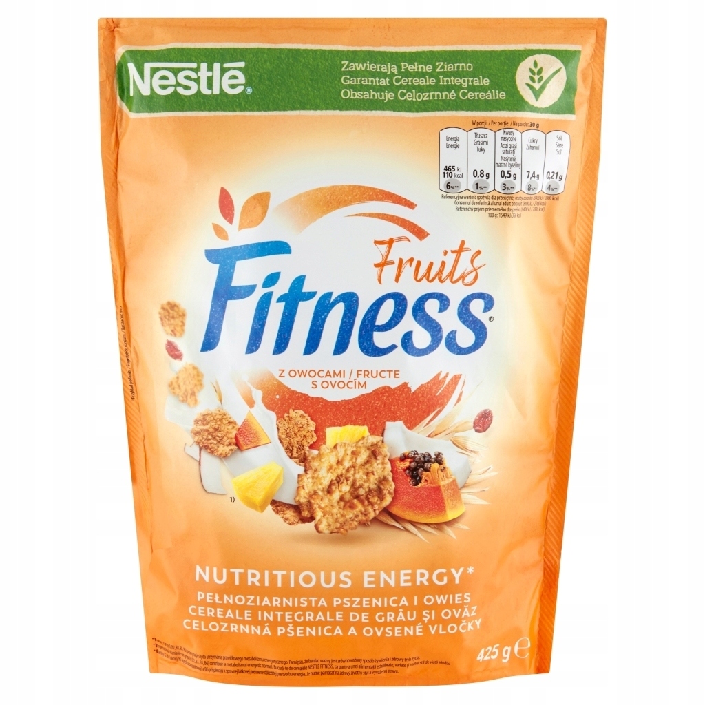 Вкусные и питательные хлопья для завтрака Nestlé Fitness Fruits весом 425 г идеально подходят для быстрого и полезного завтрака или перекуса. В их состав входят хрустящие зерновые хлопья с сочными фруктами.