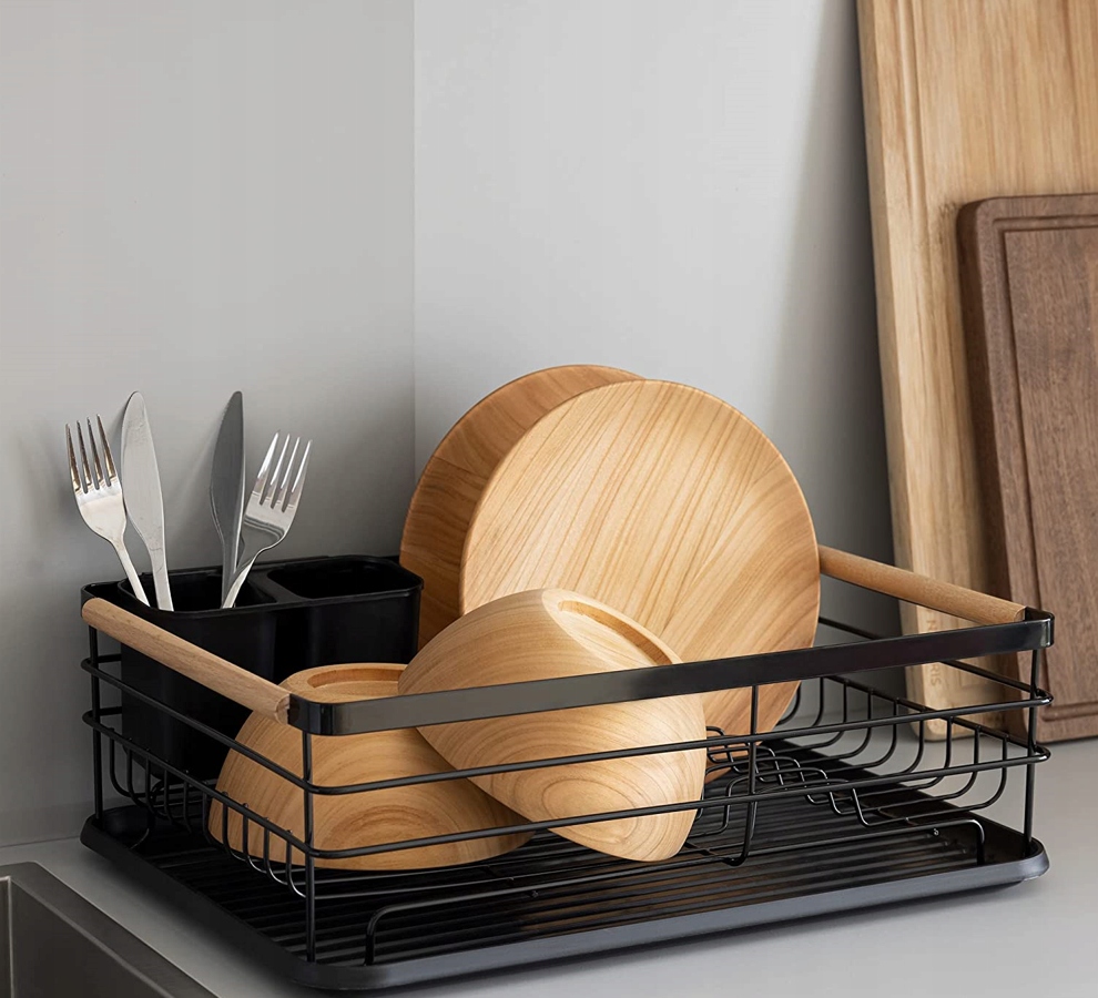 ✅Посудомоечная машина отличается очень высоким качеством и прочной металлической конструкцией. Поднос из смолы защищает столешницу от намокания. В комплект также входит пластиковая двухкамерная сушилка для столовых приборов. Металлическая черная сушилка с деревянными ручками – элегантное решение для любой кухни.