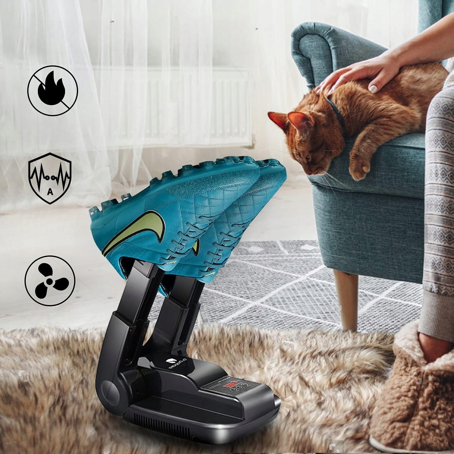 Наша сушилка сохранит вашу обувь свежей и гигиеничной независимо от погоды — идеально подходит как для зимних, так и для летних дней.