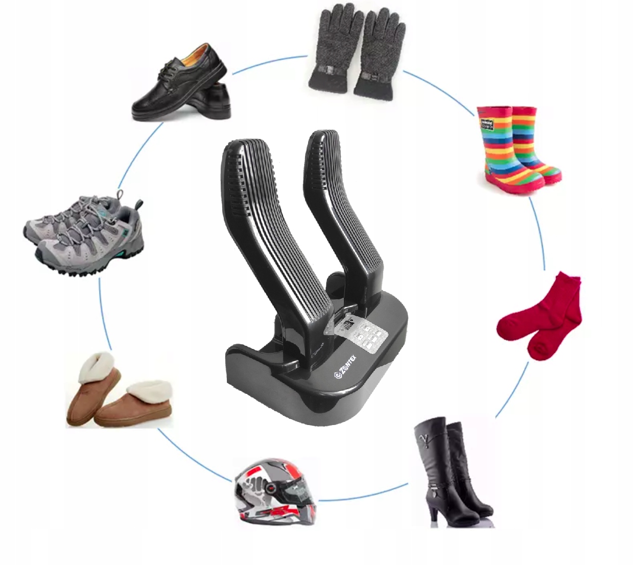Очень эффективная сушилка с озонированием для обуви, перчаток, шлемов, носков и т. д. Сушилка оснащена системой дезинфекции и удаление неприятных запахов с помощью озона.