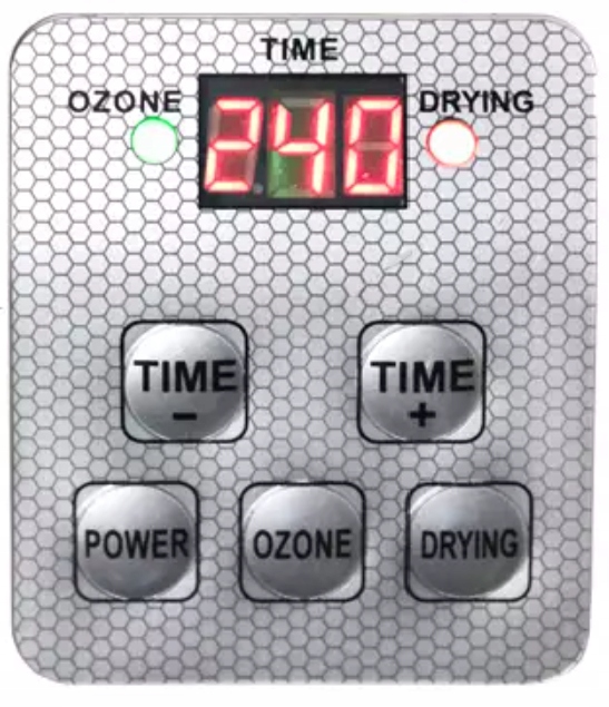 Панель управления позволяет пользователю устанавливать время сушки или озонирования. Панель также сообщает нам, сколько времени осталось до завершения озонирования или сушки