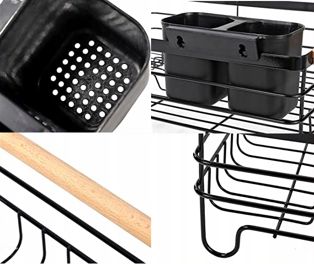 ✅Посудомоечная машина отличается очень высоким качеством и прочной металлической конструкцией. Поднос из смолы защищает столешницу от намокания. В комплект также входит пластиковая двухкамерная сушилка для столовых приборов. Металлическая черная сушилка с деревянными ручками – элегантное решение для любой кухни.