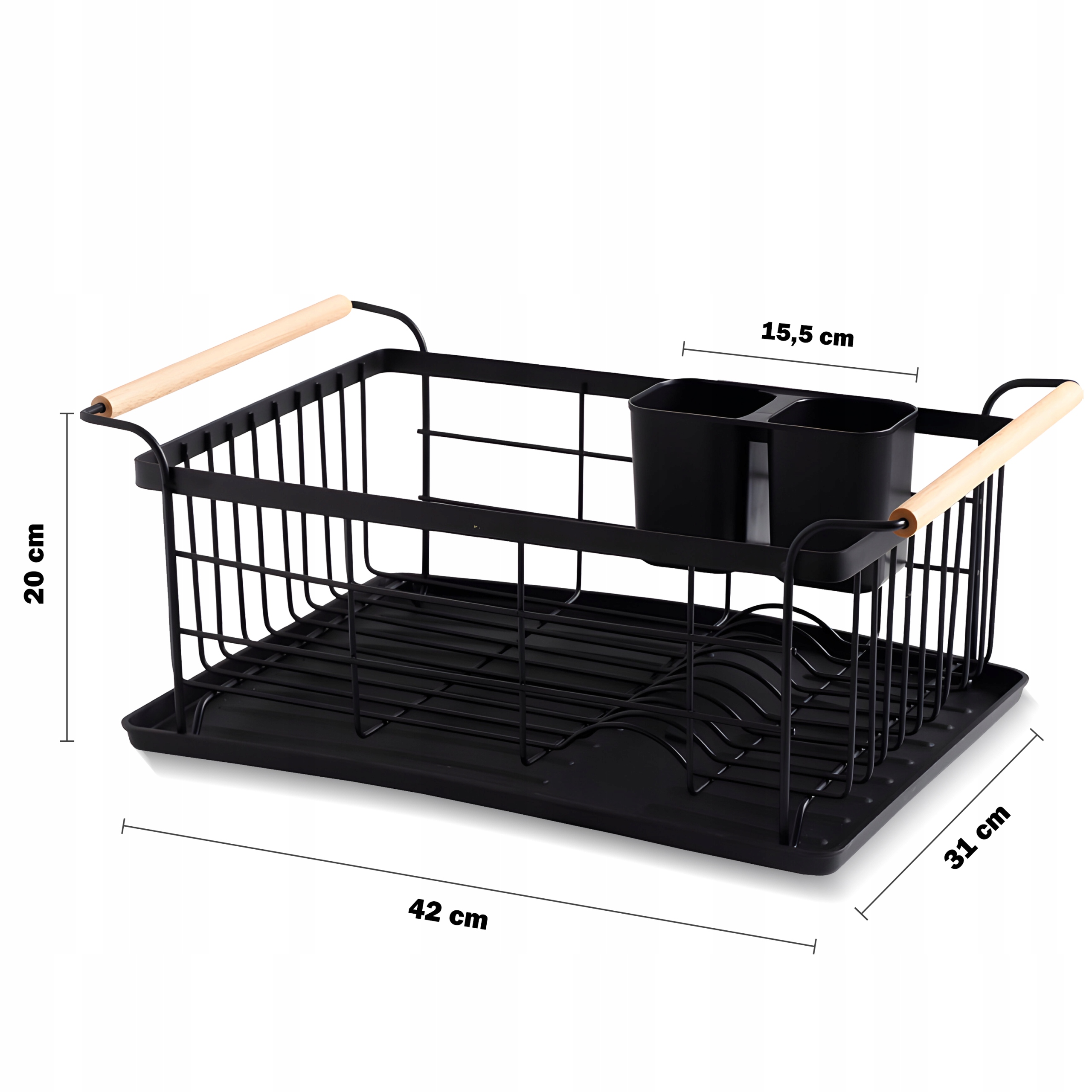 СУШКА ДЛЯ СУШІННЯ ПОСУДУ З ПІДНОШЕННЯМ ДЛЯ ТАРІЛОК, ЧОРНІ СТОЛОВІ ПРИБОРИ, ВЕЛИКА ПІДСТАВКА
