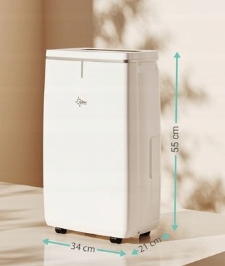 Экономичный осушитель для помещений площадью до 150 м³ (~ 63 м²) с инновационным световым индикатором для отображения уровня влажности (варьируется в пределах 35-80%)