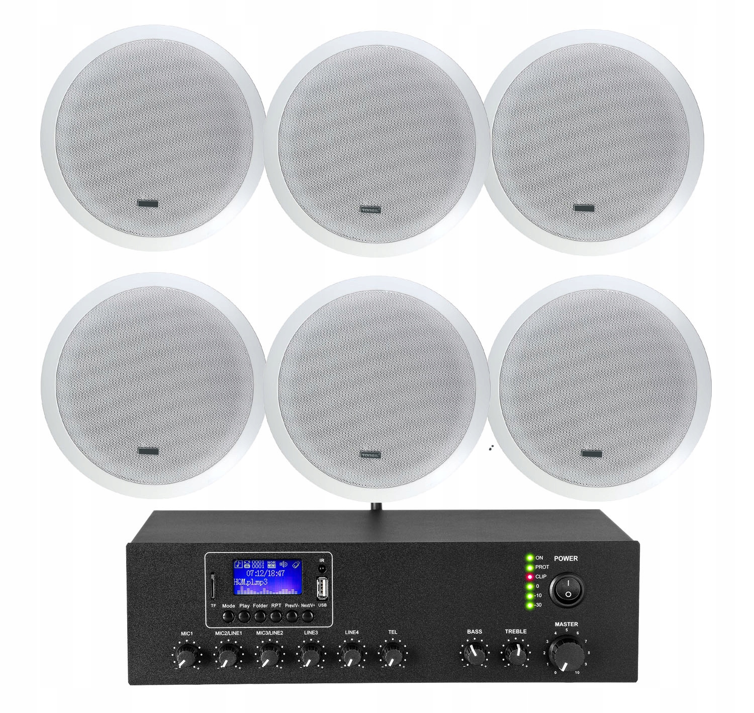 Ниже приведен набор радио звуковой звуковой системы 110 В с потолочными динамиками Tonsil 10wrms, а также с усилителем Wi -Fi 110V mp3, Aux, USB, SD и с bluetooth . количество ораторов.