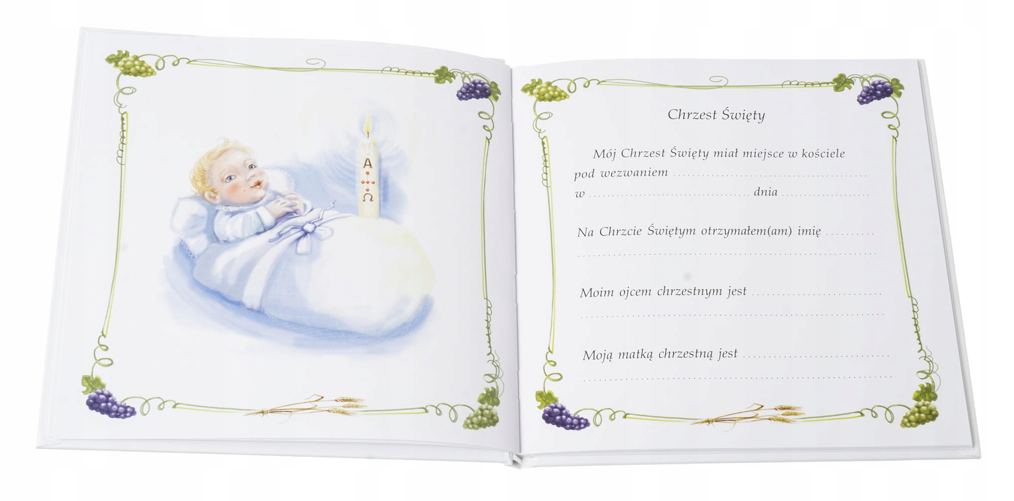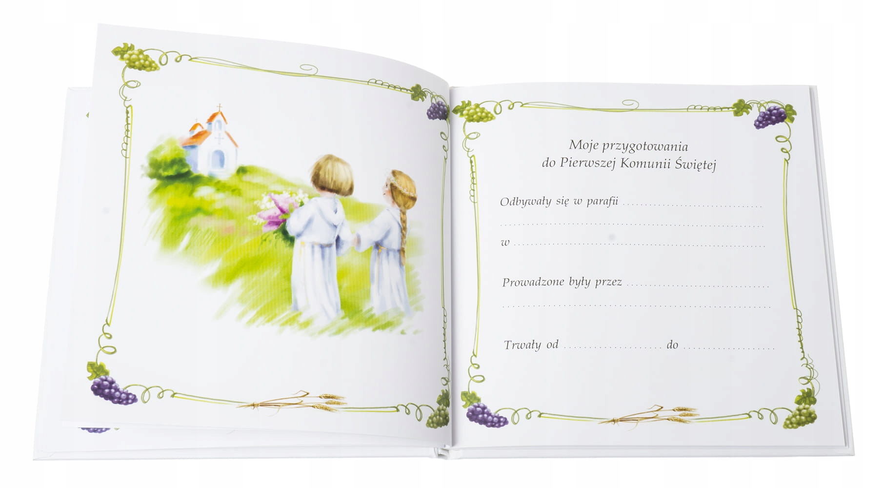 Уникальная, сувенирная книга в виде альбома для Первого Причастия. Альбом – чрезвычайно элегантный подарок к Первому Причастию. Он полон красочных страниц и места для добавления наиболее важной информации. Мы также можем вставить в него свои фотографии.