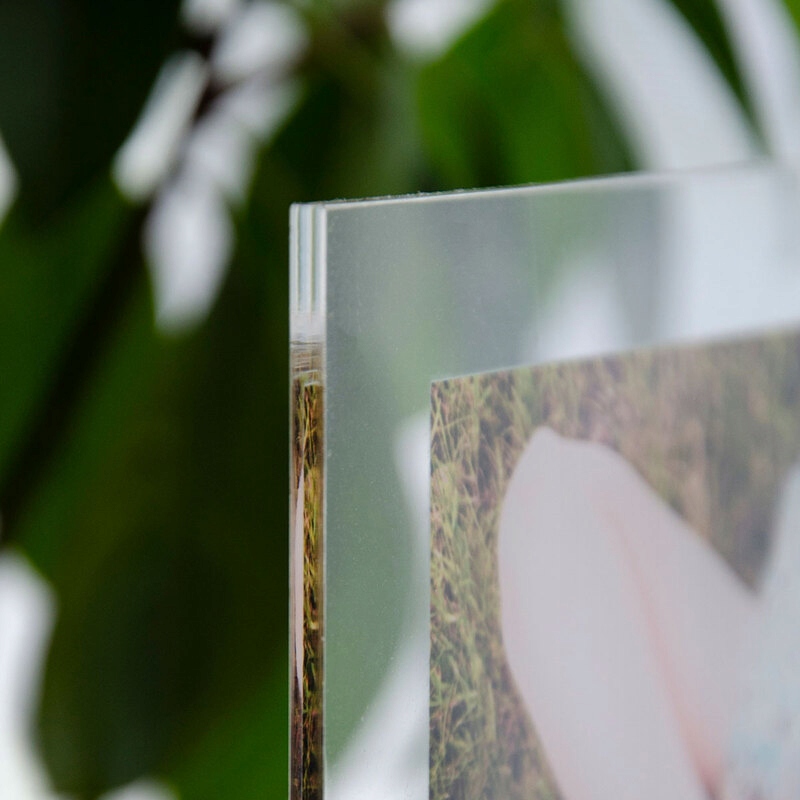 Благодаря лазерной резке рама имеет идеально гладкие края. Высочайшее качество, разборчивый отпечаток отлично смотрится на прозрачной поверхности. Прозрачное оргстекло придает напечатанным фотографиям естественный блеск и небывалую глубину, создавая эффект «изображения за стеклом».